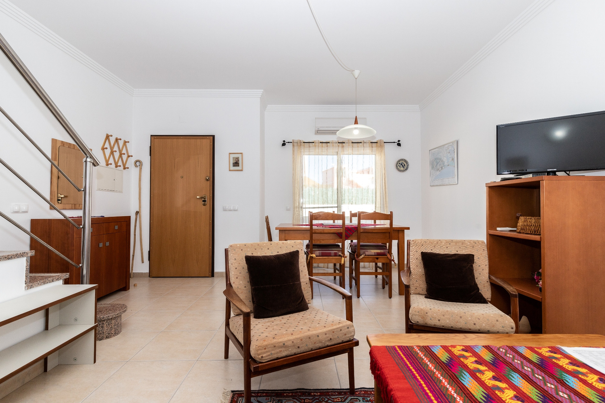Constituida por dois pisos: No Rés-do-chão composta por sala com TV, aparelhagem e zona de jantar para seis pessoas, casa de banho comum com poliban de hidromassagem, cozinha equipada com: microondas, frigorifico, forno, máquina de lavar roupa e loiça.
