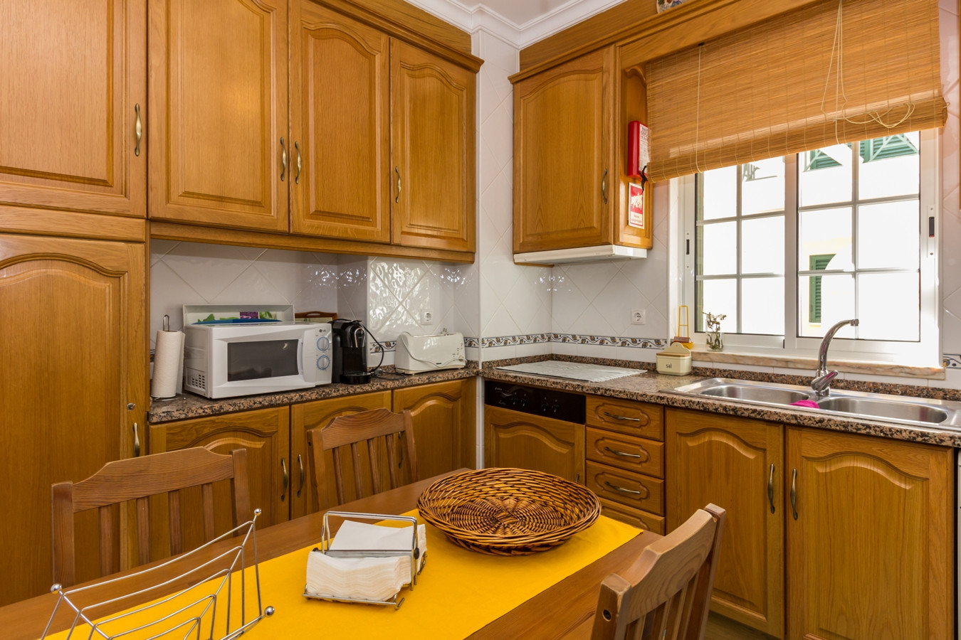 La cocina completamente equipada, ofreciendo todos los electrodomésticos necesarios para preparar deliciosas comidas. Disfrute de refrigerador, lavadora, horno, microondas, cafetera (DOLCE GUSTO), tostadora y hervidor, garantizando toda la comodidad de casa.