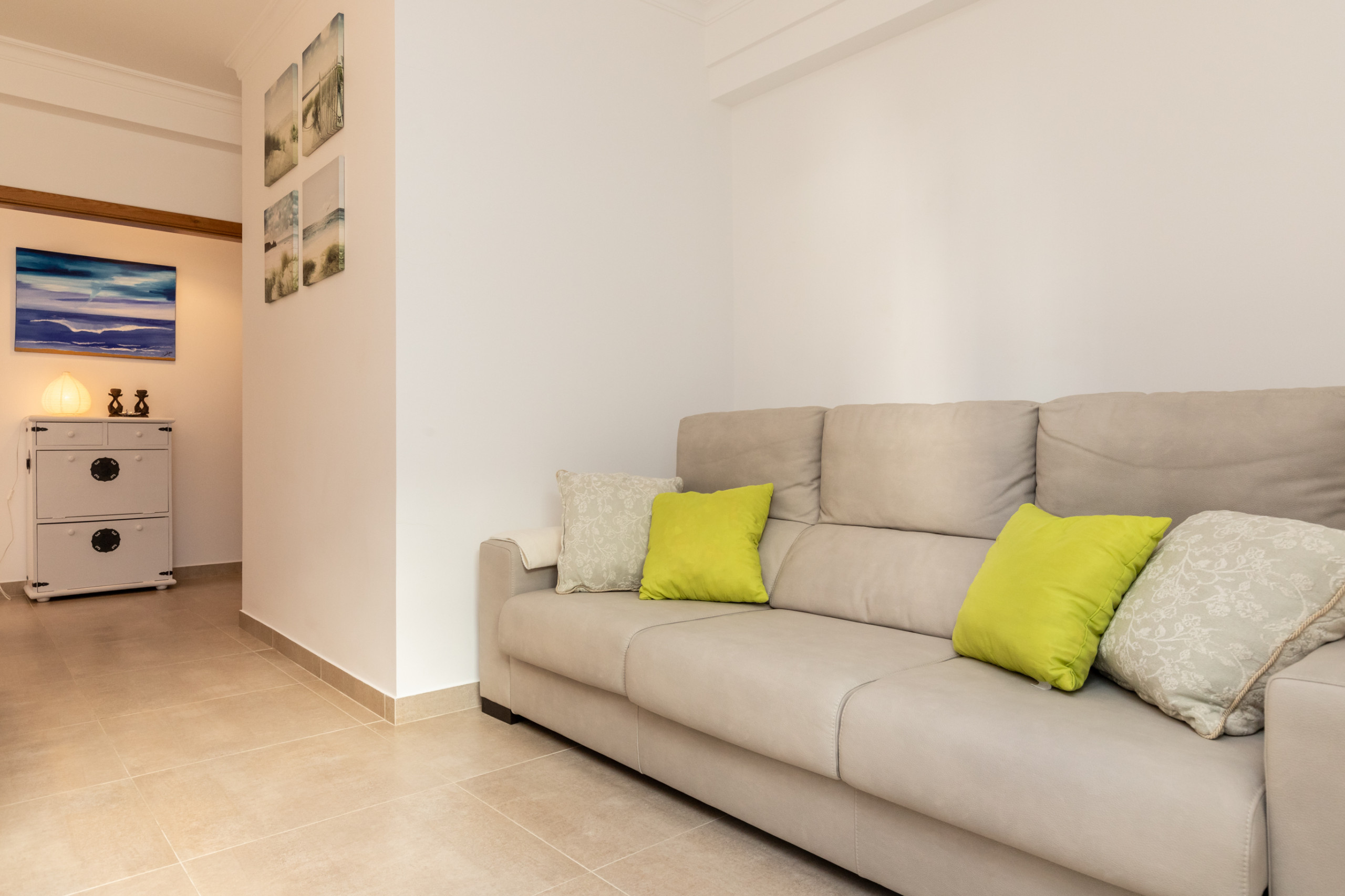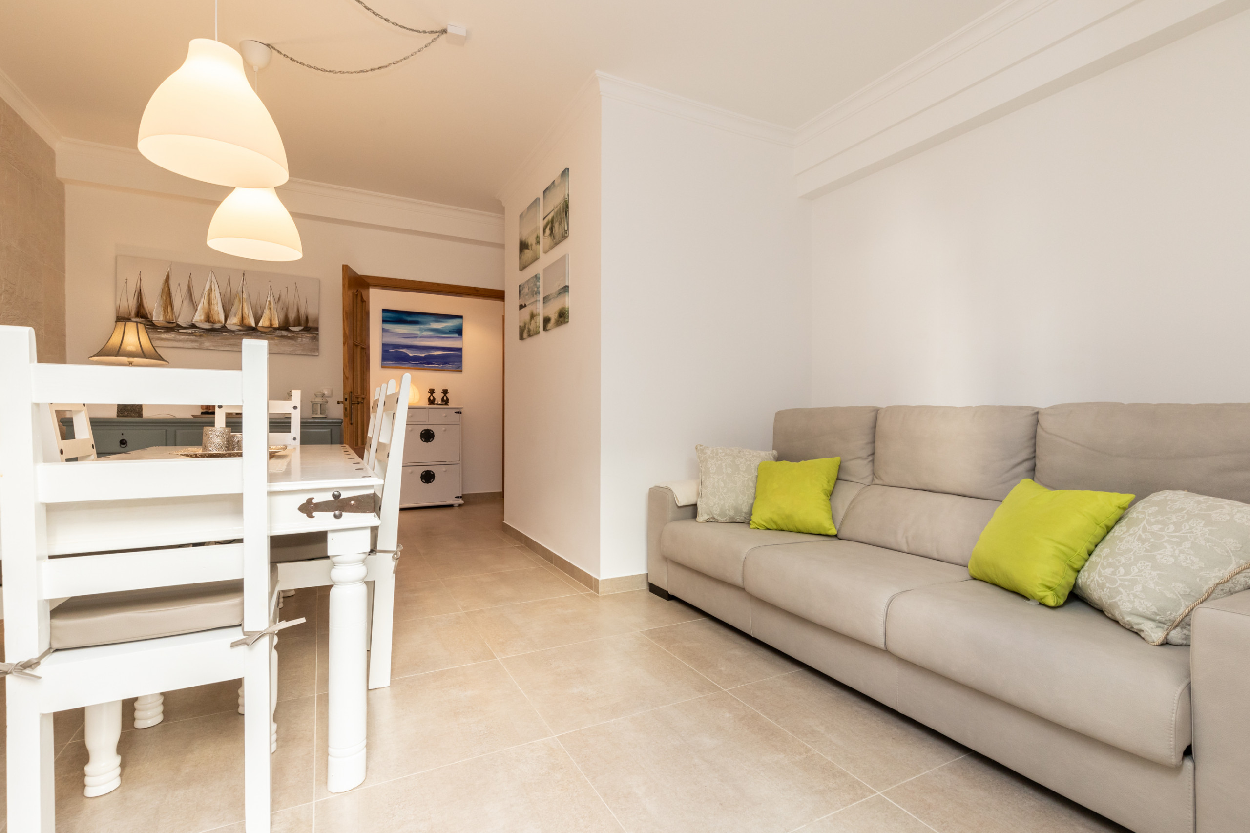 El apartamento cuenta con una habitación cómoda equipada con una cama de matrimonio y un sofá-cama, permitiendo alojar cómodamente hasta 4 personas. La luminosidad y el diseño moderno crean un ambiente acogedor y relajante, perfecto para descansar después de un día de playa o exploración.