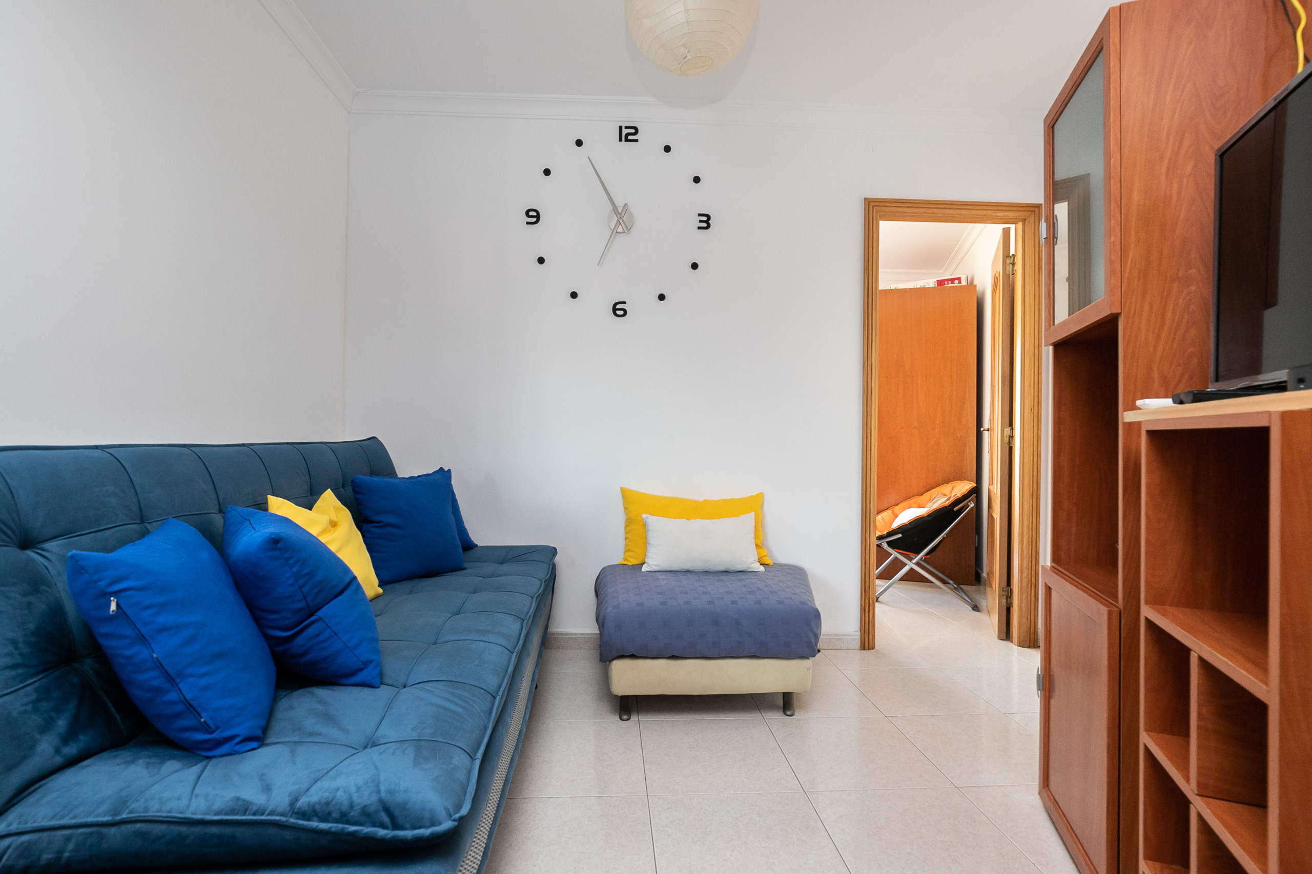 El apartamento cuenta con una habitación espaciosa con una cama de matrimonio cómoda y un sofá-cama adicional, permitiendo alojar hasta 4 personas con facilidad. El área social es acogedora y luminosa, con aire acondicionado en la sala de estar para garantizar el máximo confort durante los días más calurosos.
