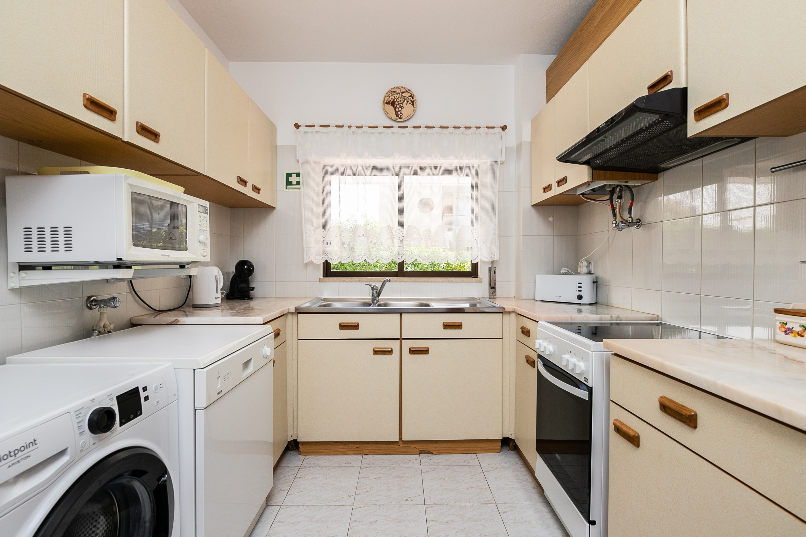 O Apartamento tem uma cozinha muito velha degradada. É visivel a degradação dos moveis junto ao chão. Andavam formigas por todo o lado. Ao ligarmos a maquina de lavar roupa tivemos uma inundação na cozinha porque os esgotos estavam entupidos. Demoraram três dias a vir resolver a situação.