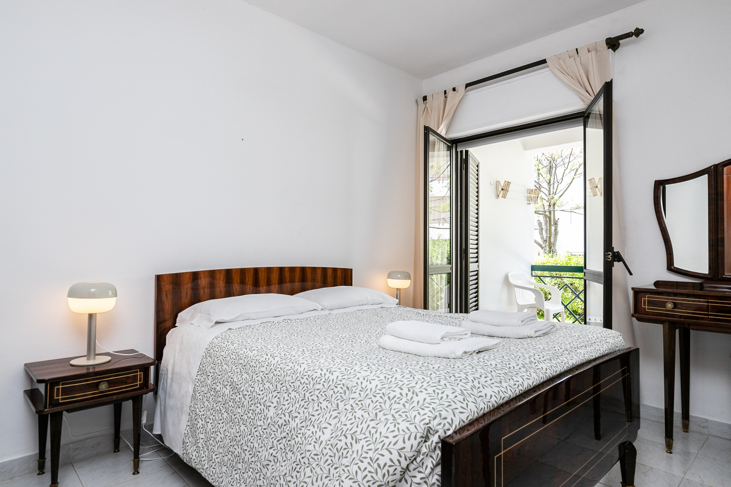 La sala de estar y una de las habitaciones tienen acceso directo a una terraza privada orientada al oeste, perfecta para comidas al aire libre en familia o momentos de ocio al final del día. Existe además una segunda terraza en la entrada, orientada al este, ideal para disfrutar de las tranquilas mañanas.