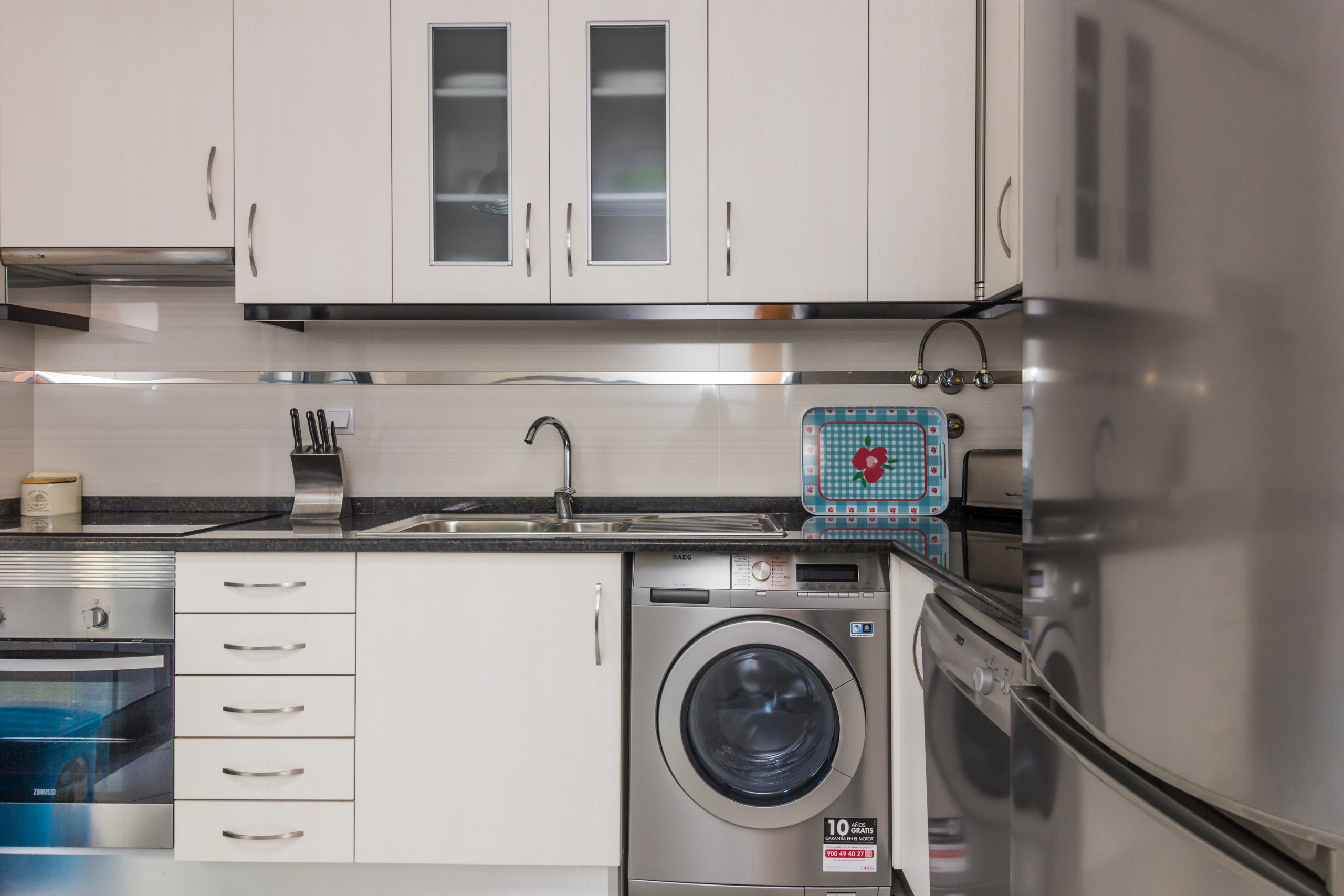 La cocina completamente equipada, ofreciendo todos los electrodomésticos necesarios para preparar deliciosas comidas. Disfrute de refrigerador, lavadora, horno, microondas, cafetera (DOLCE GUSTO), tostadora y hervidor, garantizando toda la comodidad de casa.