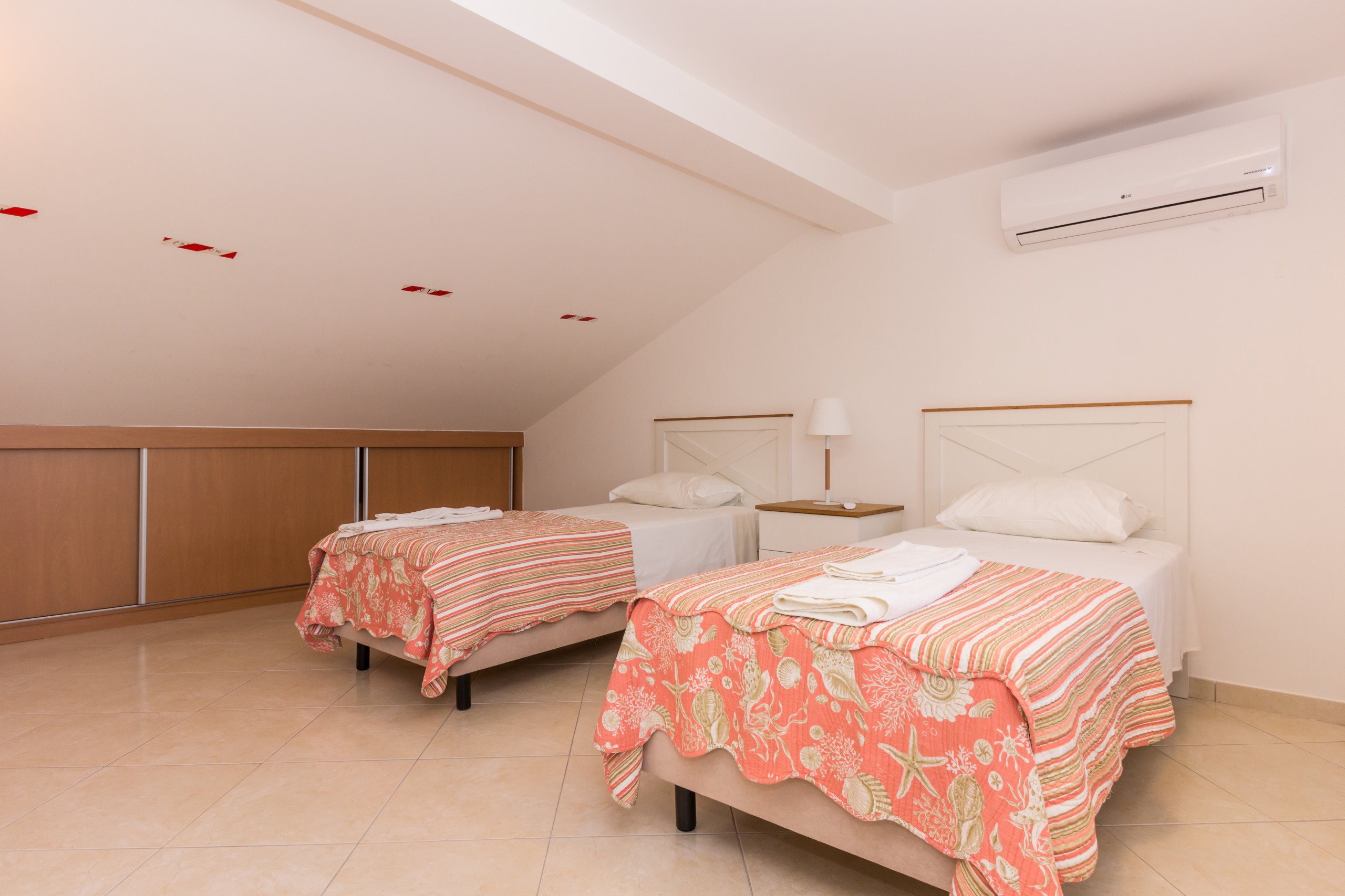 Neste alojamento o piso 1 não está ao mesmo nível pois a falta de privacidade no quarto maior onde a porta e tapa luz da janela são biombos e a falta de habitabilidade para adultos no quarto pequeno faz com que seja um t1+2 recomendável para um casal com vários filhos. Também aparecem visitas indesejadas de formigas no interior da casa.