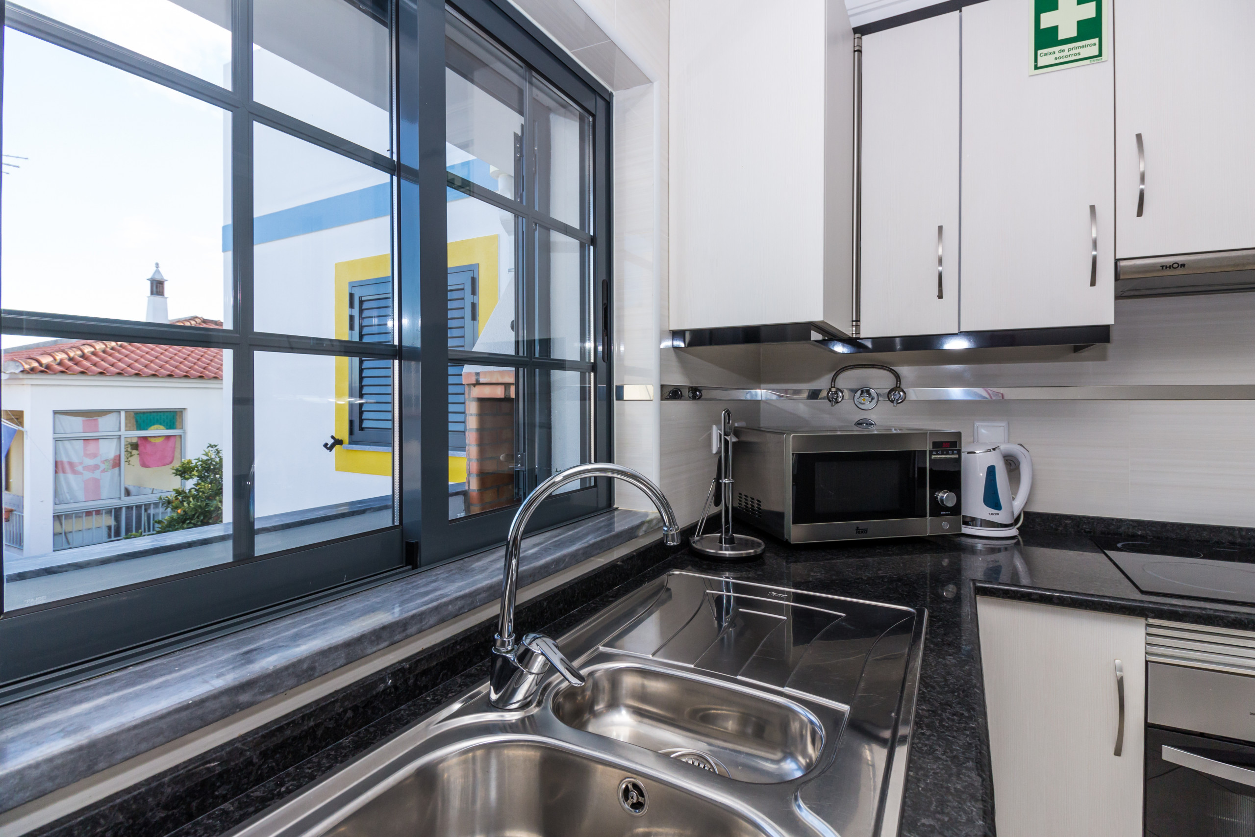 La cocina del inmueble, equipada con electrodomésticos, incluyendo frigorífico combinado, placa, horno, microondas, tostadora, máquina de café (Dolce Gusto), jarra eléctrica, lavavajillas y lavadora, así como todos los utensilios necesarios para preparar deliciosas comidas.