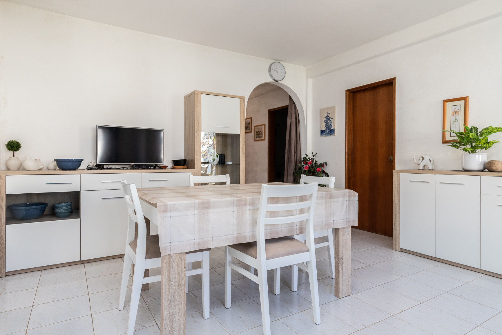 El apartamento cuenta con una habitación cómoda equipada con una cama de matrimonio y un sofá-cama, permitiendo alojar cómodamente hasta 4 personas. La luminosidad y el diseño moderno crean un ambiente acogedor y relajante, perfecto para descansar después de un día de playa o exploración.