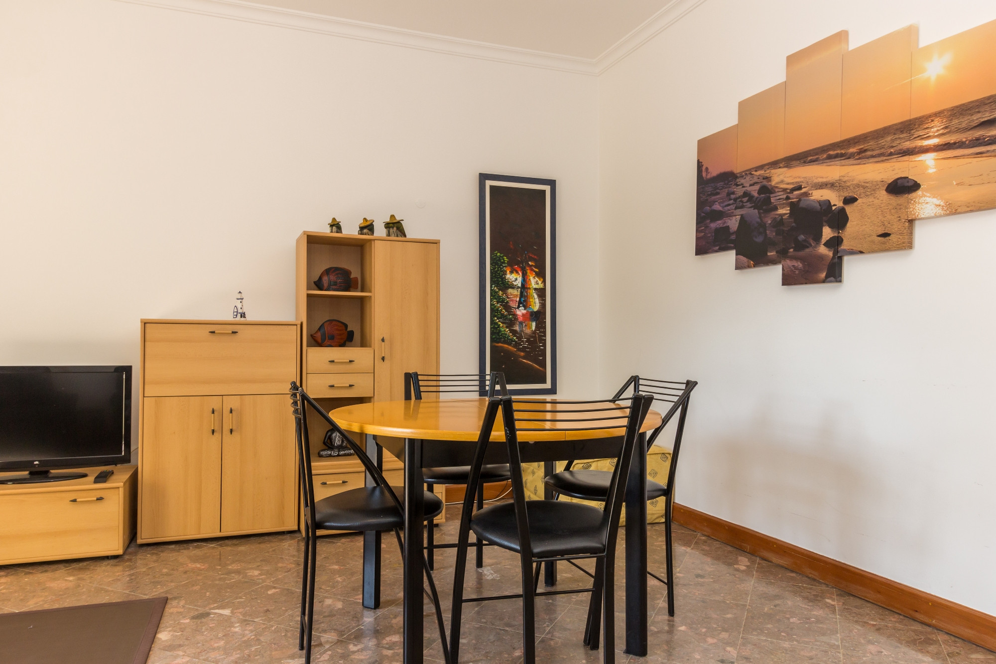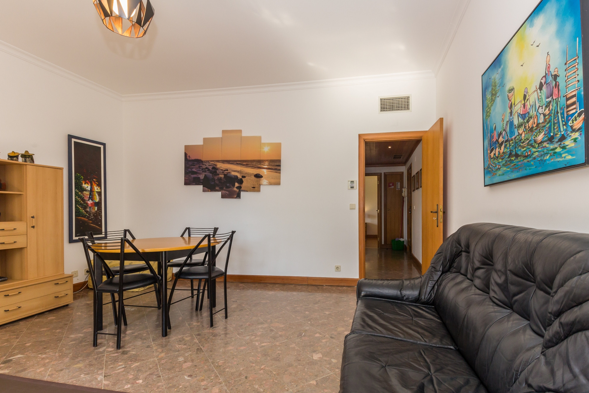 El apartamento cuenta con una habitación espaciosa con una cama de matrimonio cómoda y un sofá-cama adicional, permitiendo alojar hasta 4 personas con facilidad. El área social es acogedora y luminosa, con aire acondicionado en la sala de estar para garantizar el máximo confort durante los días más calurosos.
