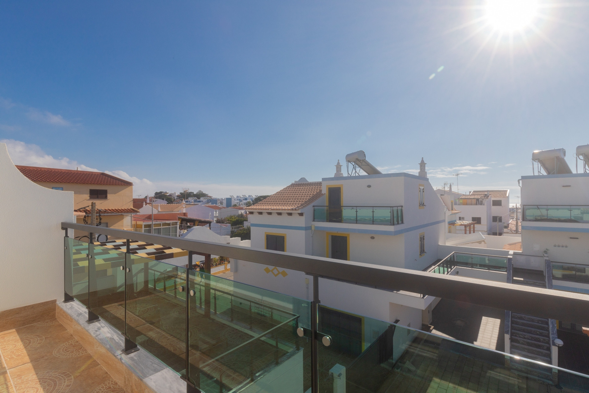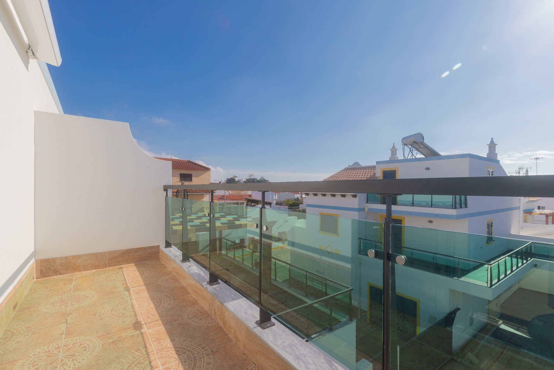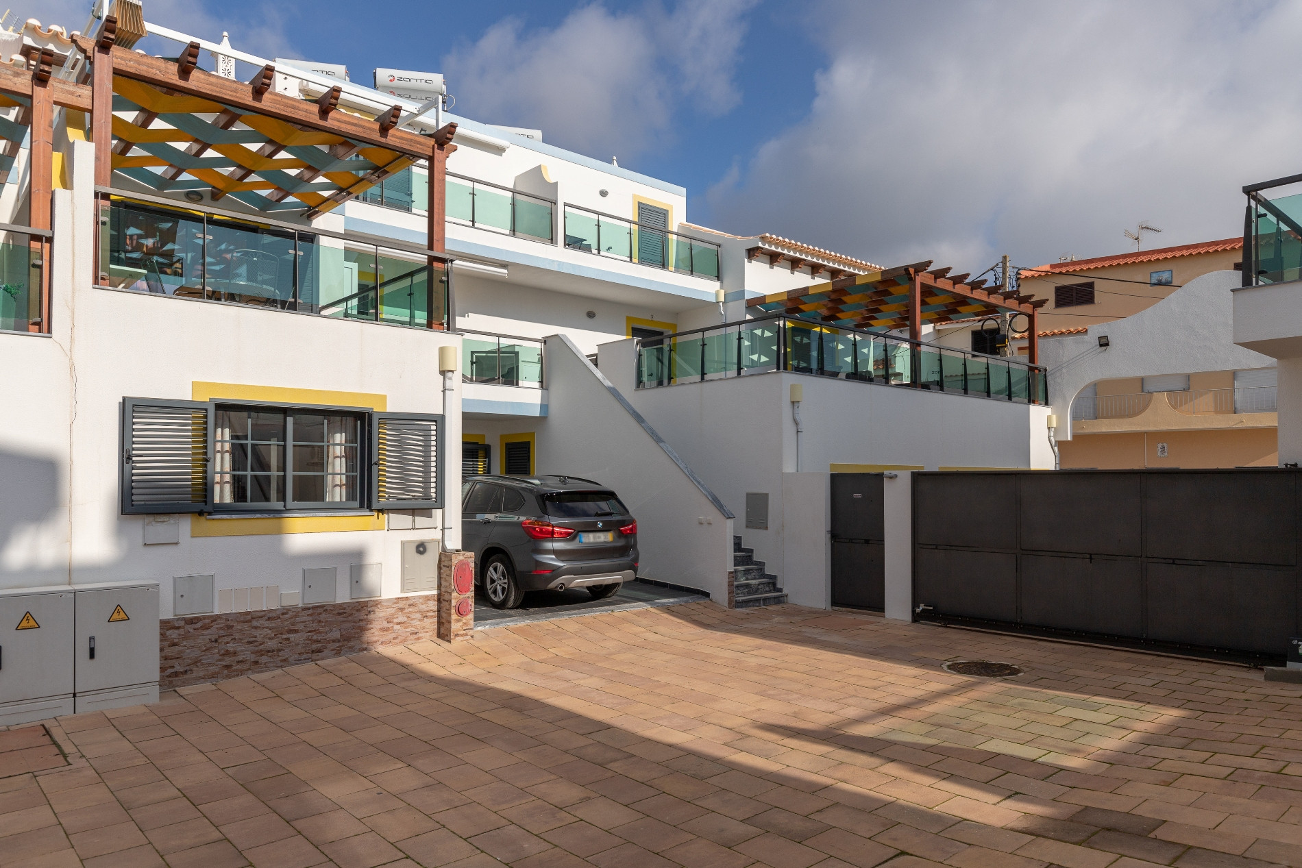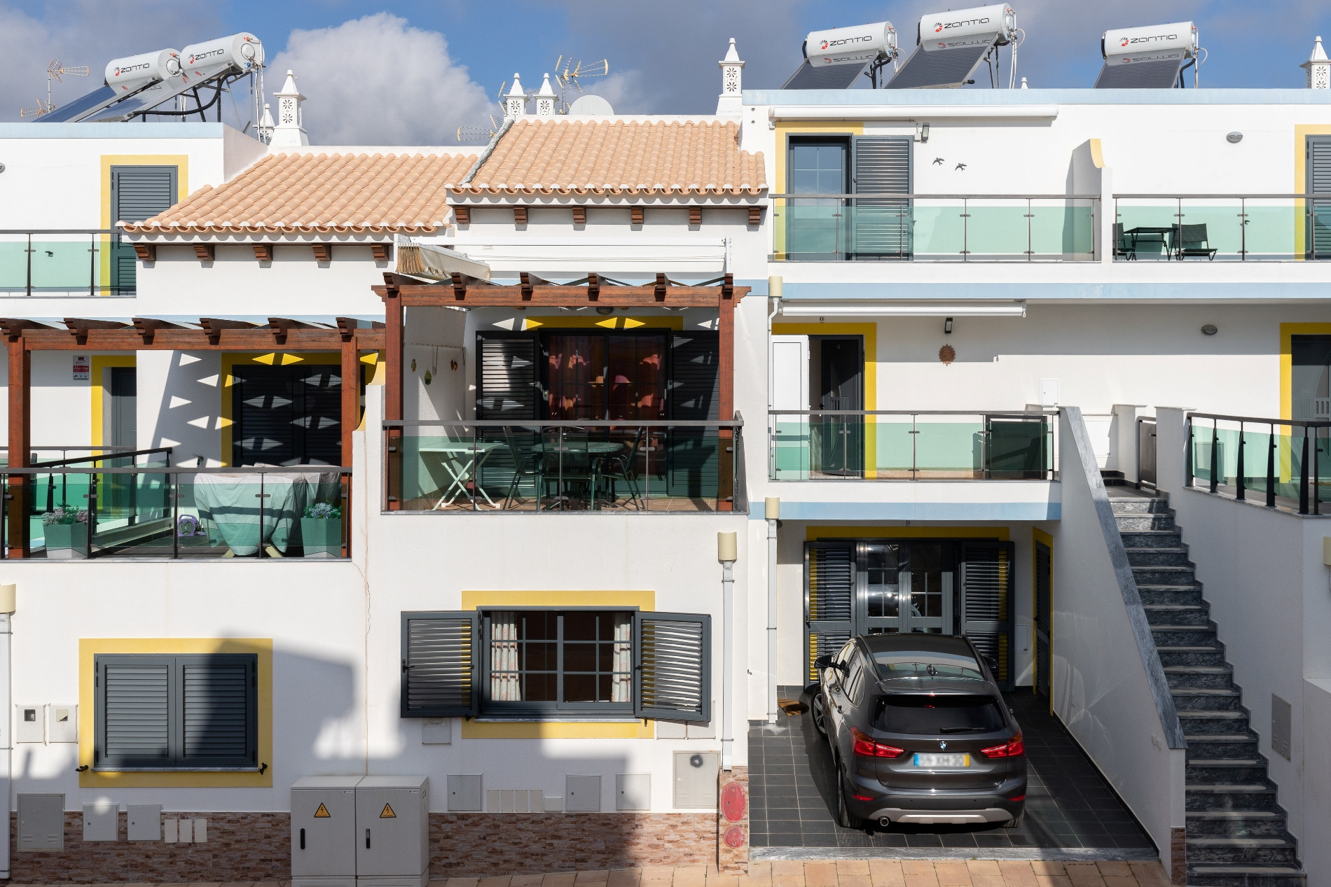 El inmueble cuenta con una piscina privada de 2 metros, ideal para relajarse o divertirse, y una terraza de 10m² con mobiliario de jardín. Un patio delantero completa las áreas exteriores, permitiendo disfrutar del clima del Algarve con total privacidad.