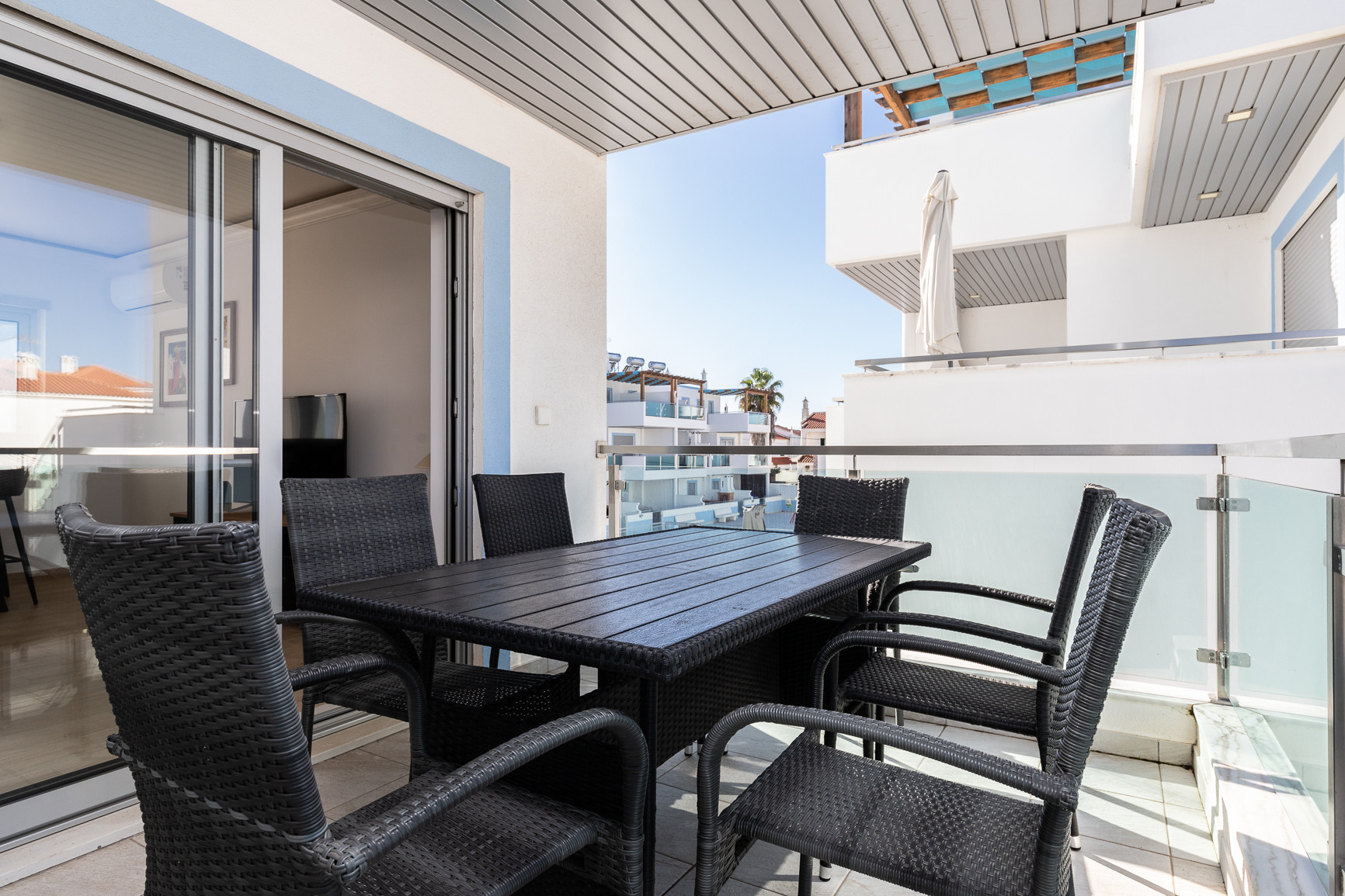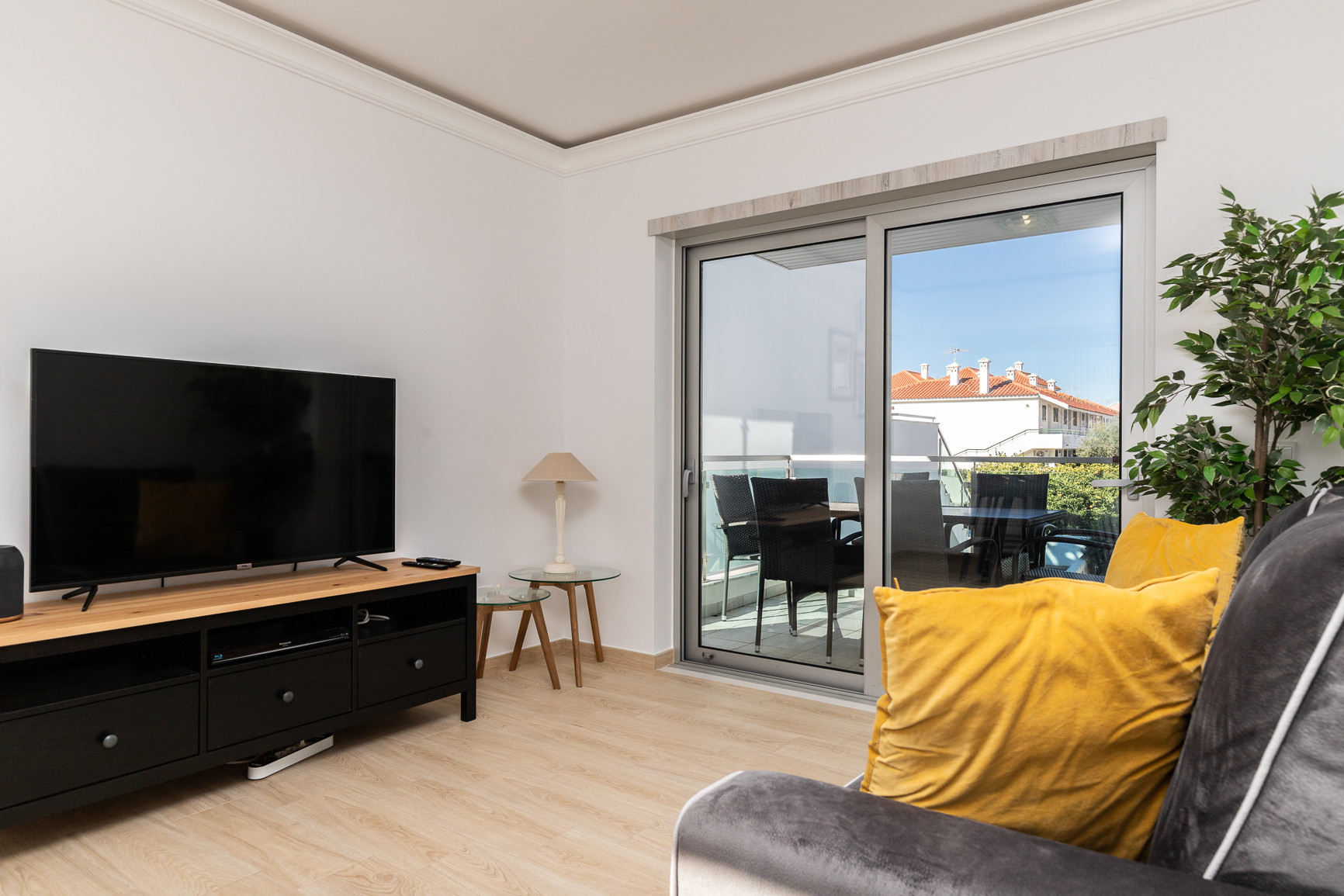 Con un área total de 97 m² y capacidad para hasta 7 personas, el apartamento está equipado con todas las comodidades esenciales, incluyendo aire acondicionado, Wi-Fi, TV MEO y una cocina moderna con electrodomésticos completos, como lavavajillas y lavadora, microondas, horno y cafetera Nespresso.
