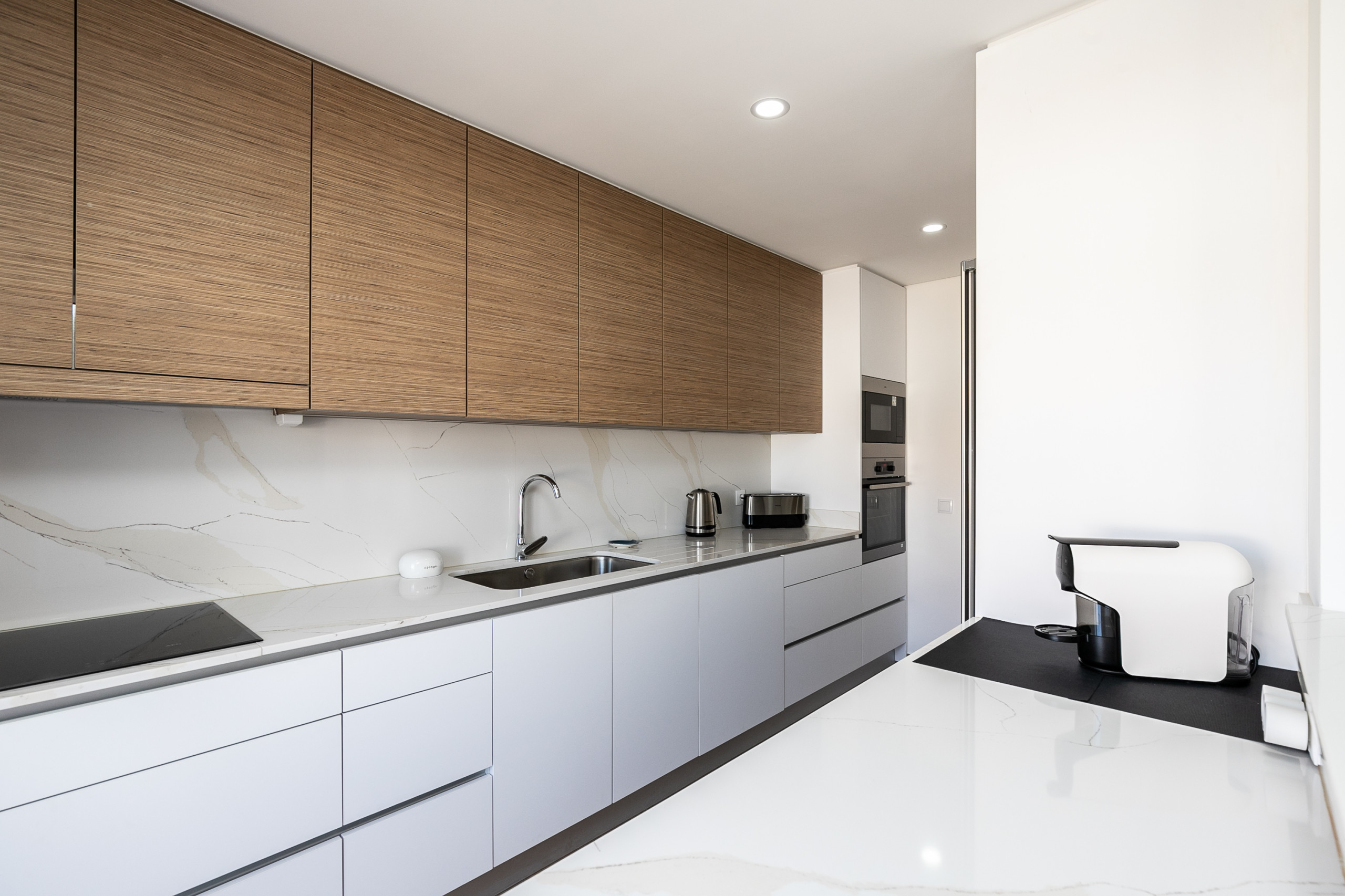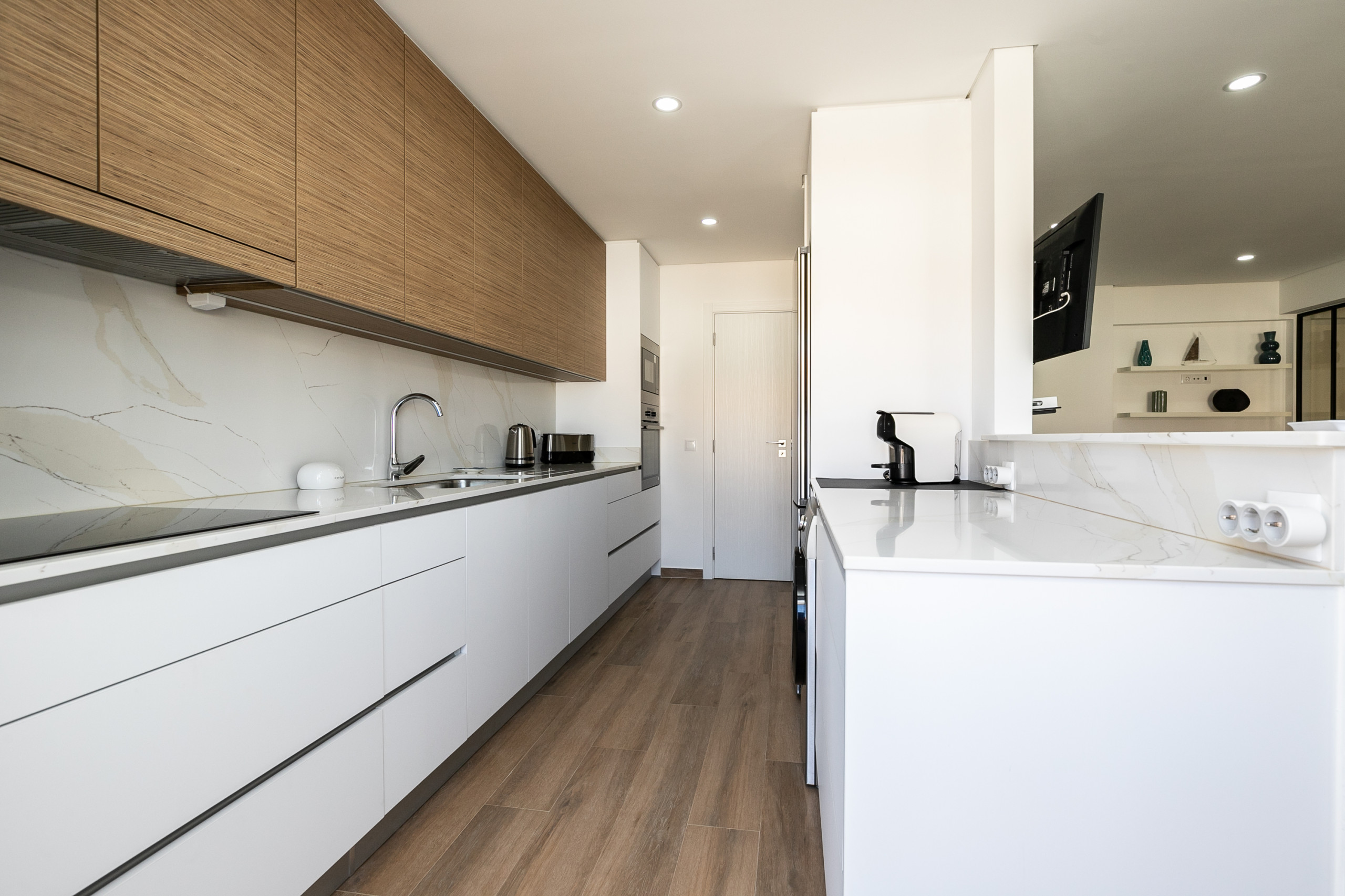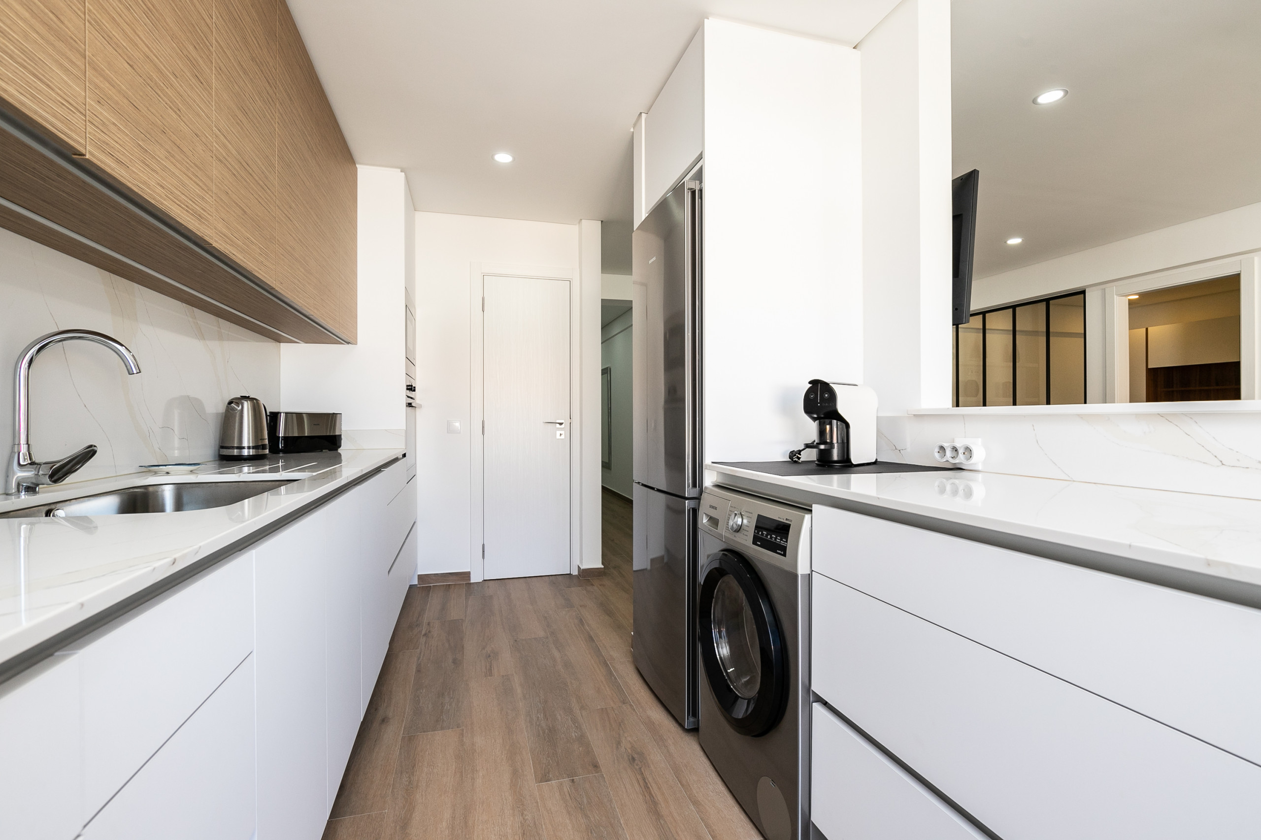 La cocina completamente equipada, ofreciendo todos los electrodomésticos necesarios para preparar deliciosas comidas. Disfrute de refrigerador, lavadora, horno, microondas, cafetera (DOLCE GUSTO), tostadora y hervidor, garantizando toda la comodidad de casa.