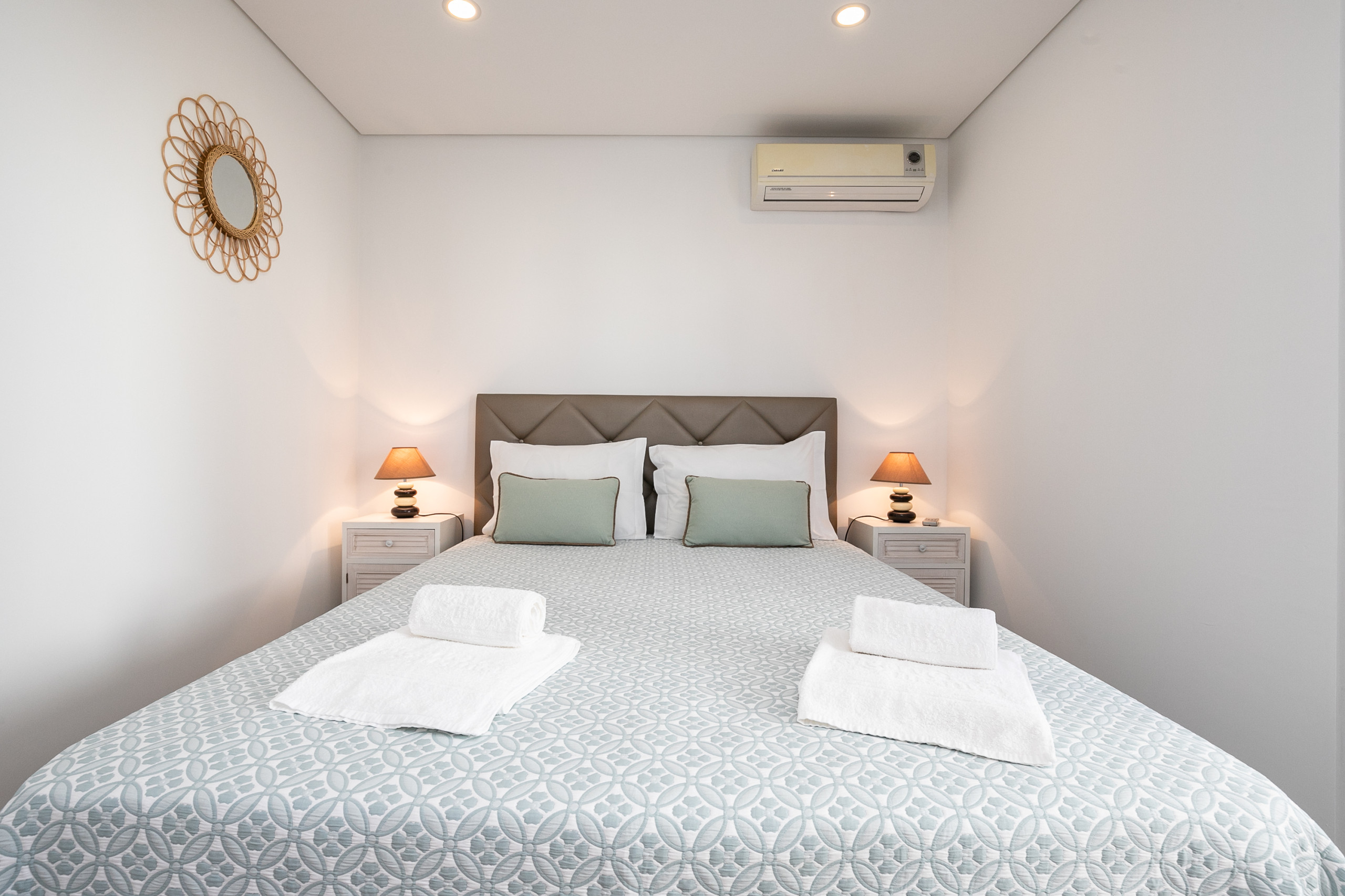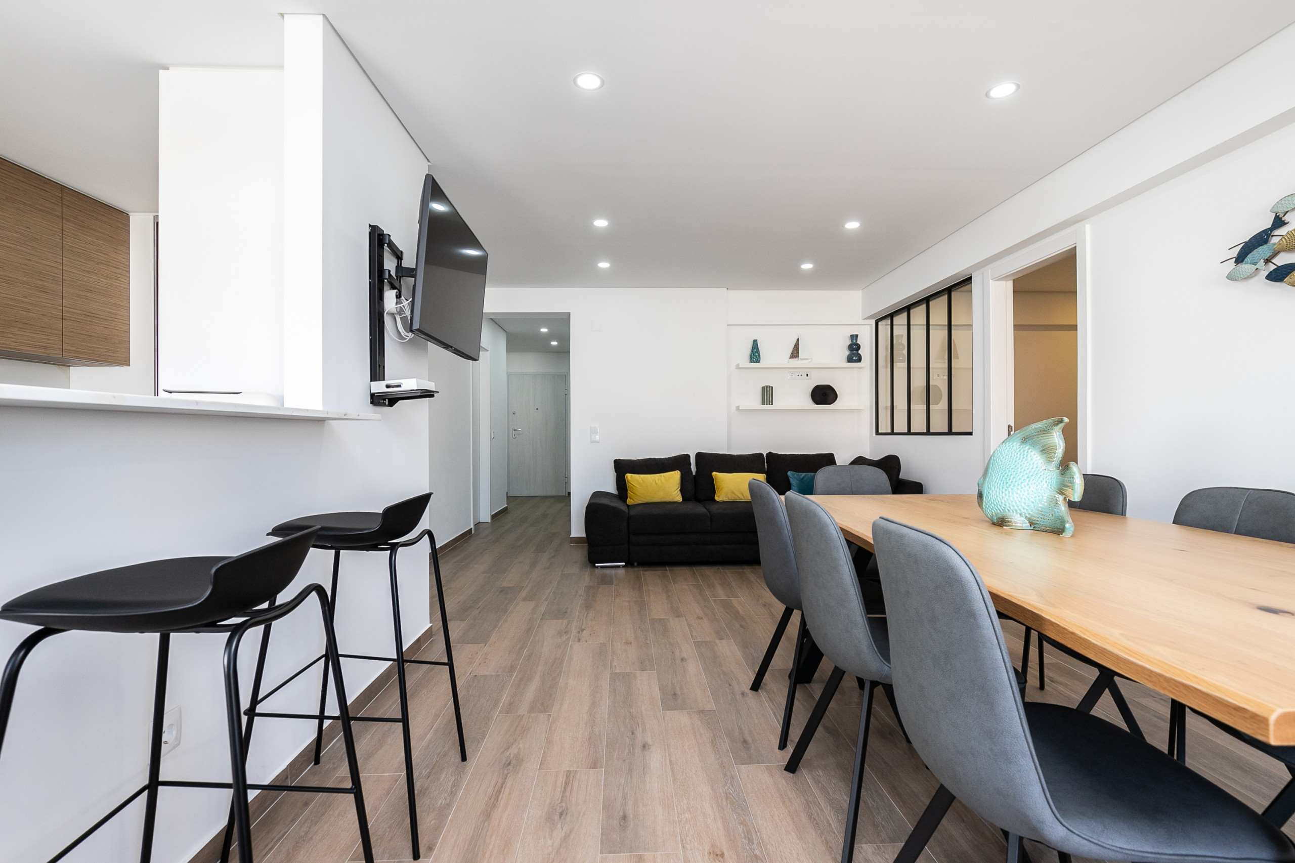 El apartamento cuenta con una habitación espaciosa con una cama de matrimonio cómoda y un sofá-cama adicional, permitiendo alojar hasta 4 personas con facilidad. El área social es acogedora y luminosa, con aire acondicionado en la sala de estar para garantizar el máximo confort durante los días más calurosos.