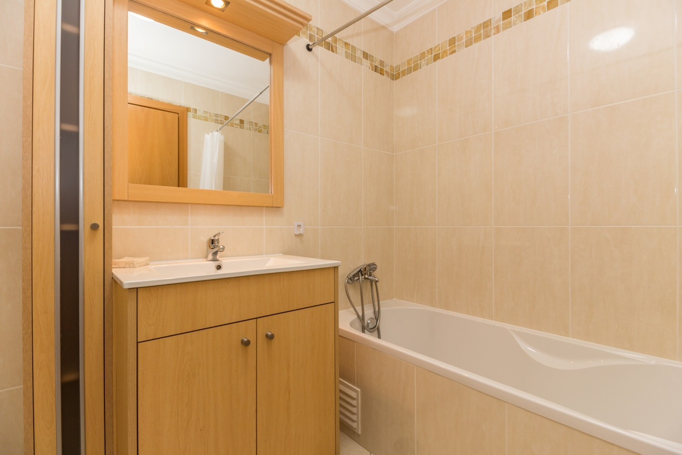 El apartamento también cuenta con un baño con bañera, aire acondicionado, Wi-Fi y TV MEO, garantizando comodidad y entretenimiento durante toda la estancia.