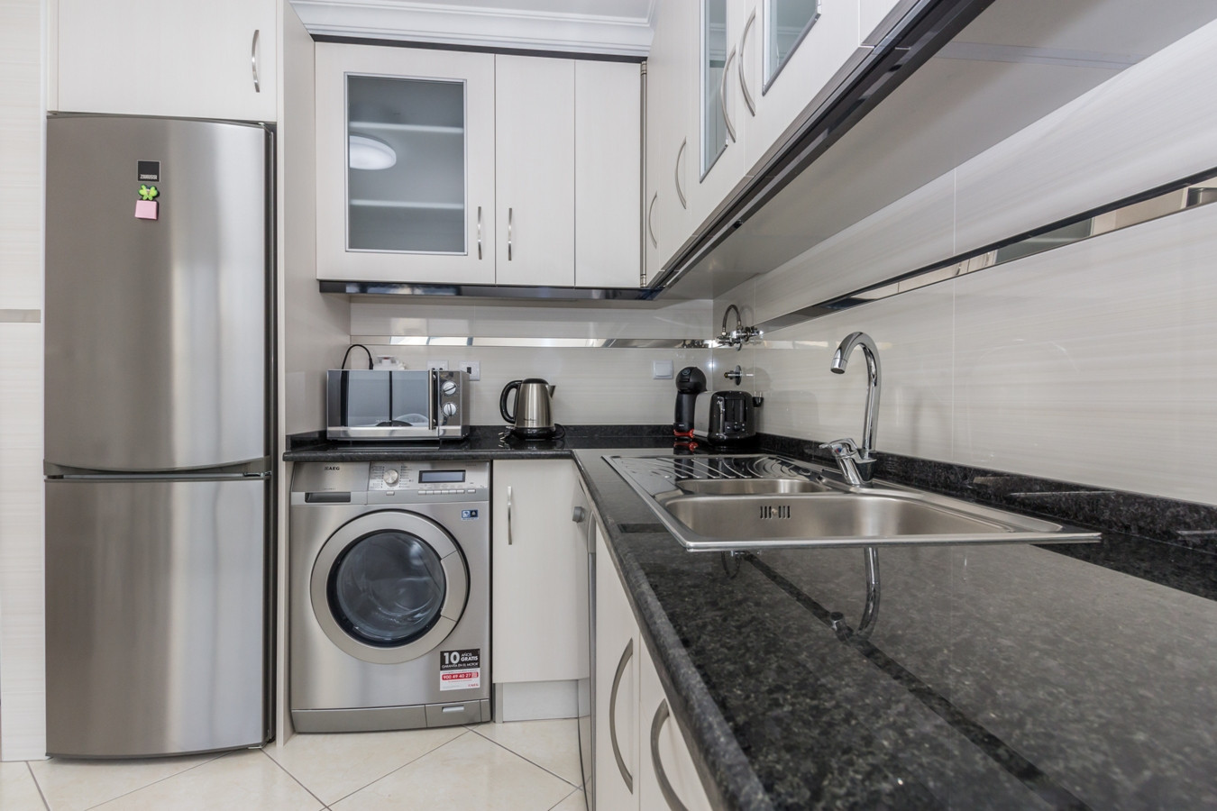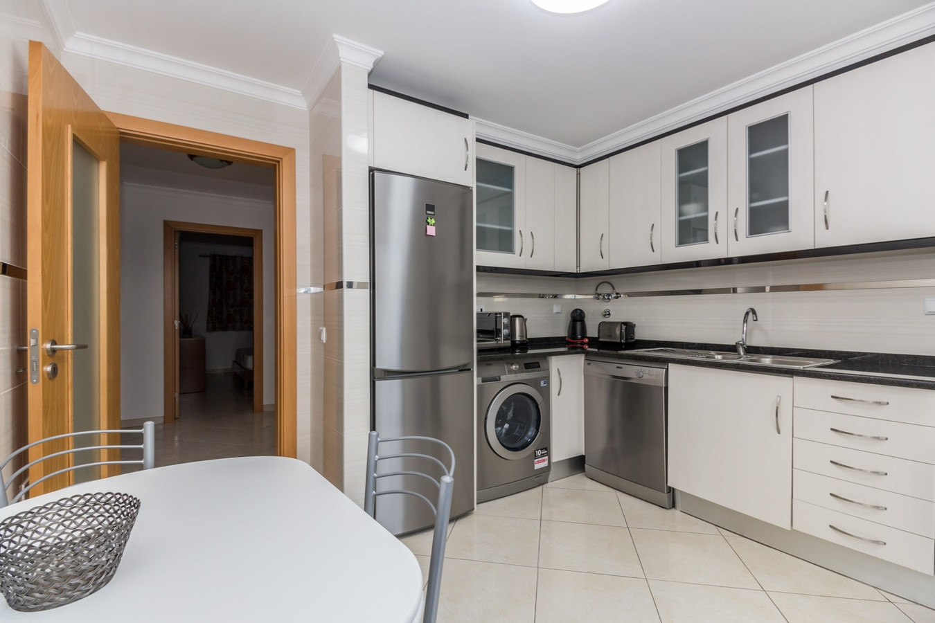 La cocina americana es un verdadero destaque del apartamento, equipada con electrodomésticos de última generación, incluyendo frigorífico combinado, placa de inducción, horno, microondas, tostadora, máquina de café de cápsulas DOLCE GUSTO, jarra eléctrica, lavavajillas y lavadora. Todos los utensilios necesarios están disponibles para preparar comidas deliciosas durante la estancia.