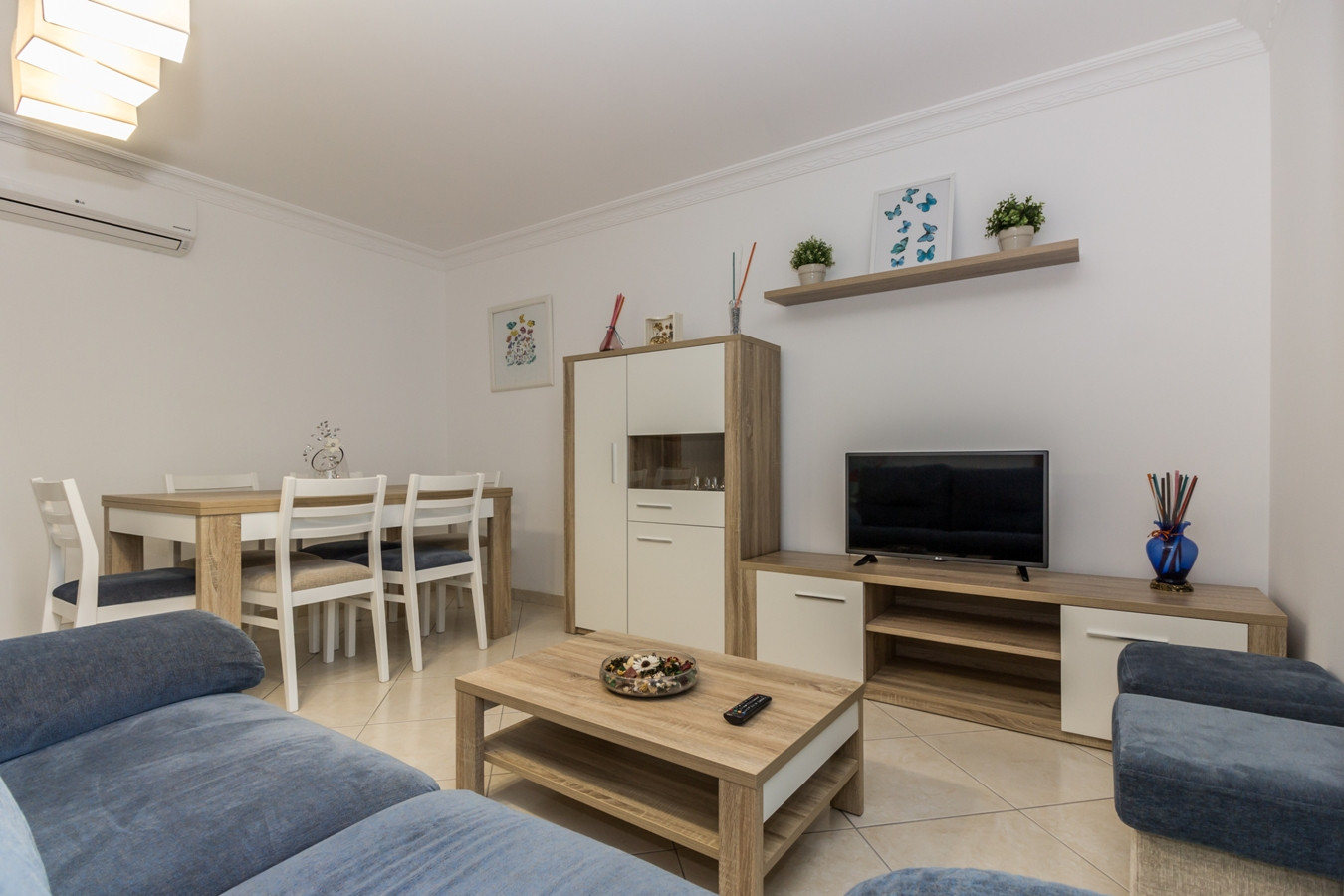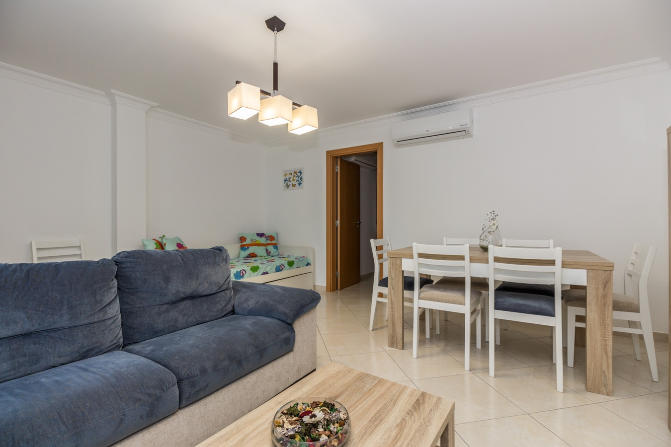 Con cerca de 70 m², el apartamento tiene capacidad para hasta 6 personas, ofreciendo un ambiente acogedor y funcional. Dispone de dos habitaciones confortables, ambas con cama de matrimonio, garantizando noches tranquilas de descanso. La sala de estar y comedor es espaciosa e incluye una cama individual con cajón (dos camas individuales), permitiendo alojamiento adicional.