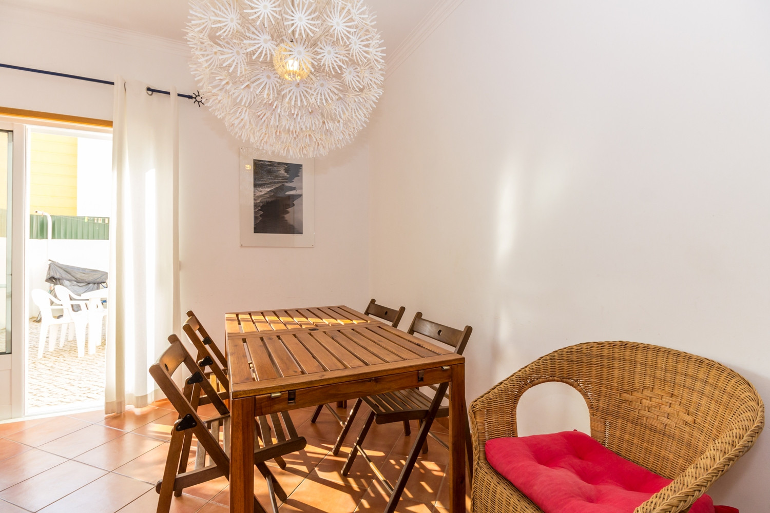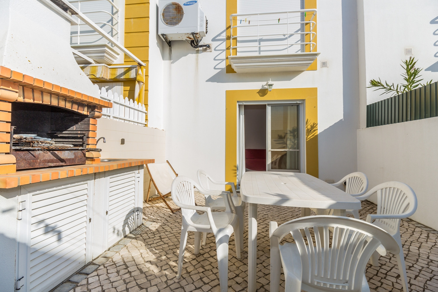 El patio, orientado al este, es un verdadero punto destacado: equipado con barbacoa, fregadero, ducha exterior, mesa y sillas, es el lugar perfecto para disfrutar de comidas al aire libre y aprovechar el sol algarvío en total privacidad.