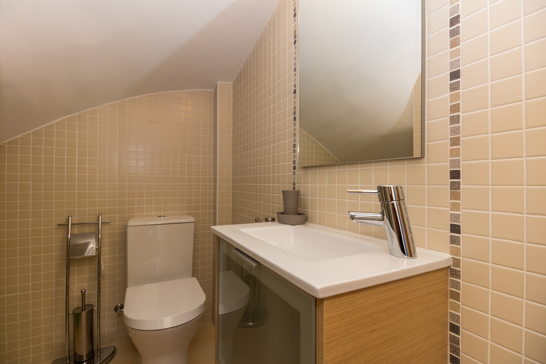 En la planta baja, encontrará un hall de entrada espacioso, cocina totalmente equipada con frigorífico combinado, placa, horno, microondas, tostadora, cafetera de cápsulas Delta Q, jarra eléctrica, lavavajillas y lavadora, además de una amplia sala de estar y comedor y un cuarto de baño con ducha. Hay dos patios: uno orientado al norte con estacionamiento privado y otro orientado al sur, con barbacoa, fregadero, sombrilla y amplio espacio para convivencia entre familia y amigos.