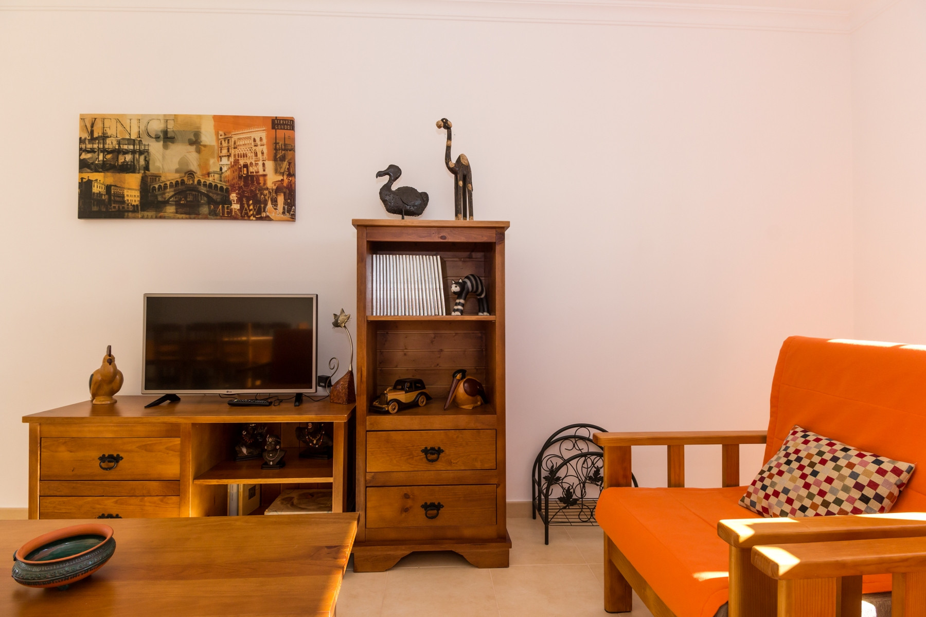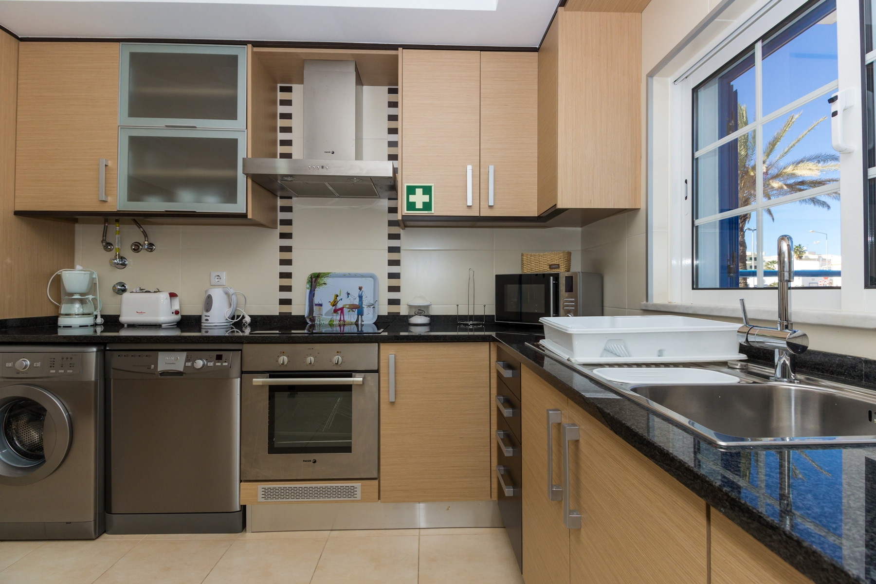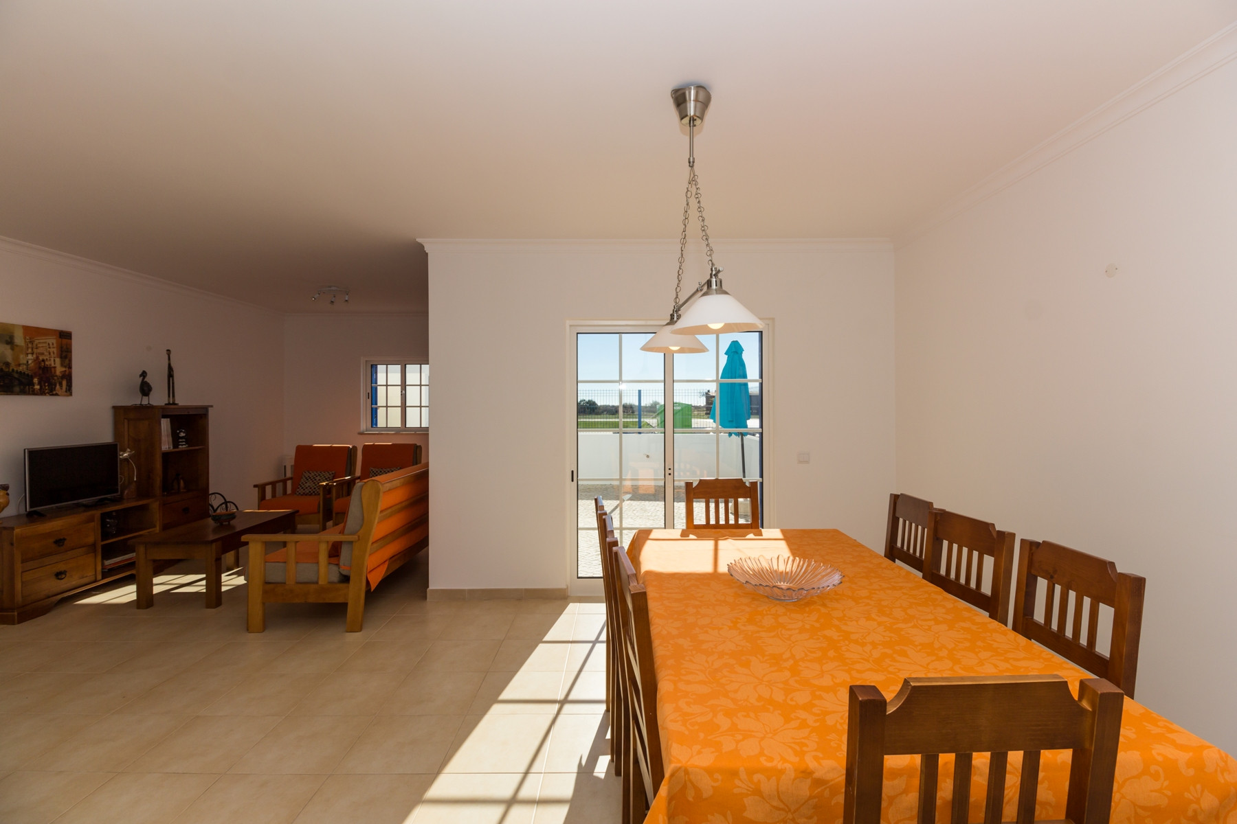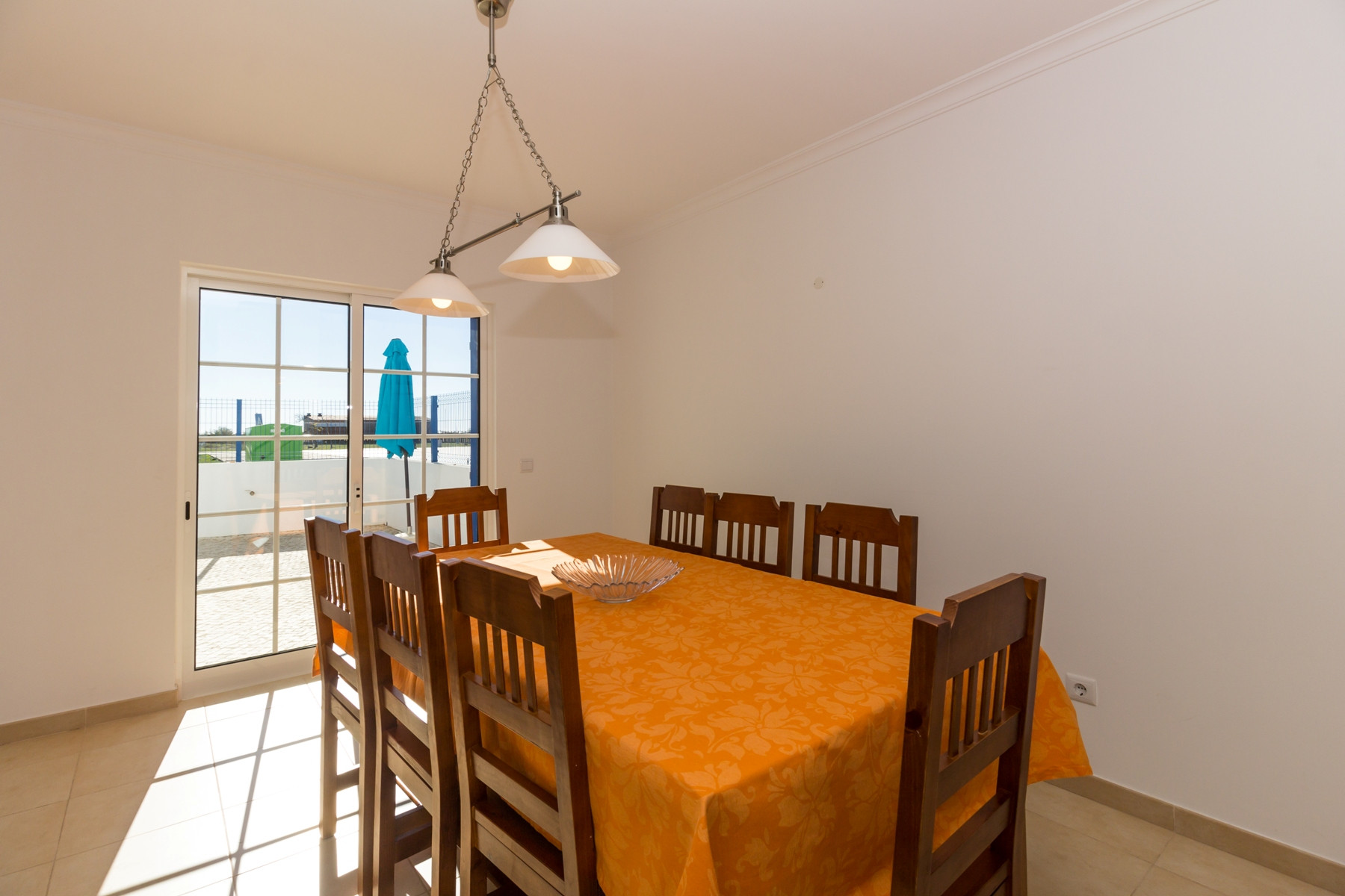 El interior de la vivienda fue cuidadosamente pensado para ofrecer comodidad y funcionalidad. La cocina americana totalmente equipada incluye frigorífico combinado, placa y horno, microondas, tostadora, hervidor eléctrico, máquina de café Nespresso y de filtro, lavavajillas y lavadora, además de todos los utensilios necesarios para preparar comidas. La amplia sala de estar y comedor tiene acceso directo al exterior y a la piscina, siendo ideal para momentos de convivencia. El alojamiento ofrece además aire acondicionado en todos los espacios, calefacción central, tres televisores y Wi-Fi gratuito.