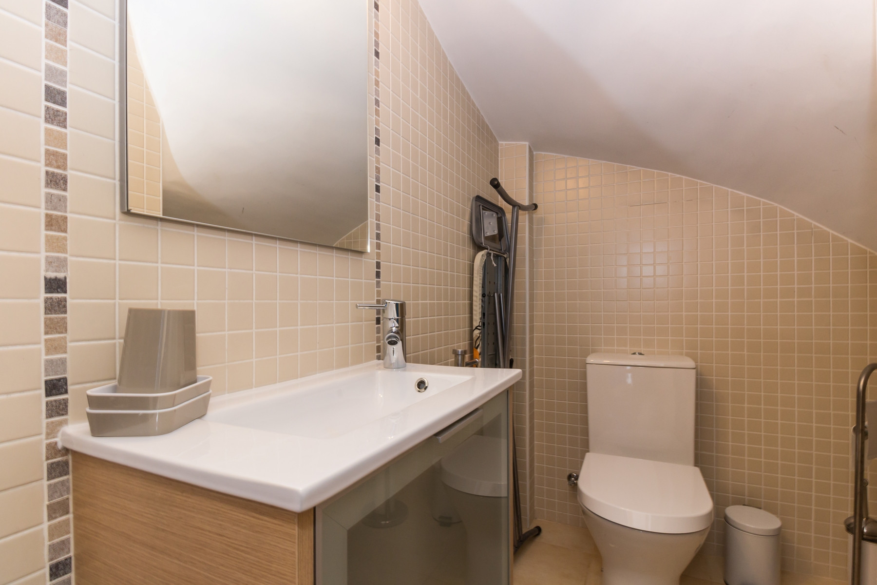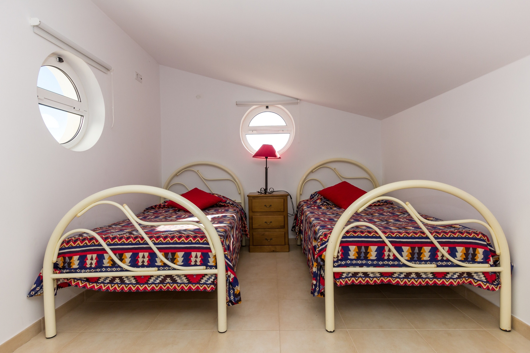 La vivienda cuenta con 3 habitaciones confortables, incluyendo una suite con cama de matrimonio y dos habitaciones con dos camas individuales cada una, todas con armarios empotrados. Dispone de 3 cuartos de baño — dos con ducha y uno con bañera — garantizando privacidad y comodidad para todos los huéspedes. Una de las habitaciones además se beneficia de un balcón orientado al este. En el ático, se encuentra una terraza con el área total de la casa y una fantástica vista al mar, perfecta para apreciar la puesta de sol o relajarse al final del día.