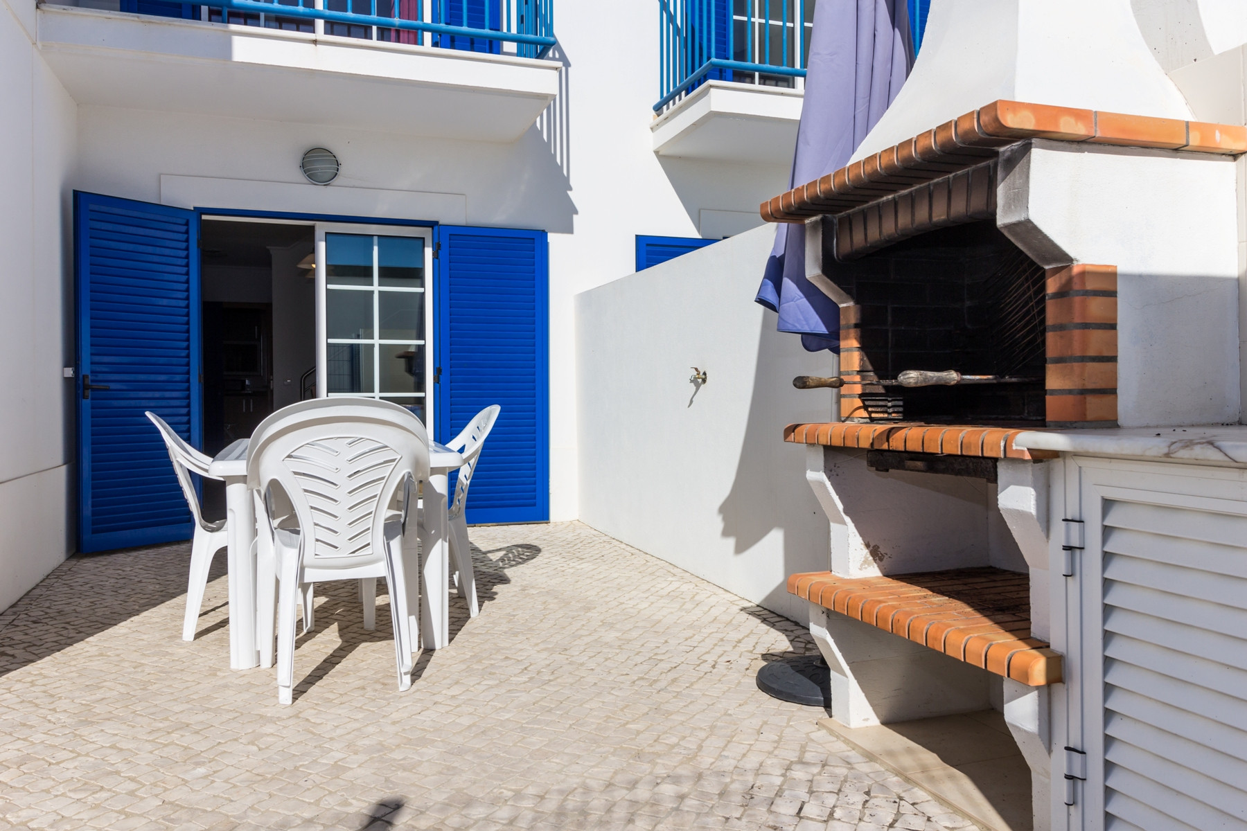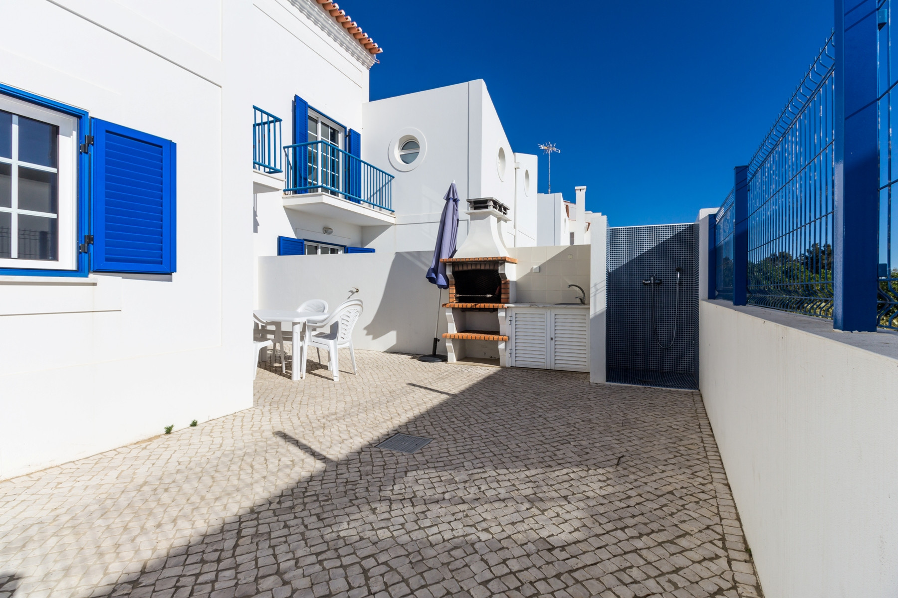 El espacio exterior maximiza la vida al aire libre, con una piscina privada orientada al oeste, tumbonas para relajarse al sol, y una zona cubierta con toldo, equipada con mesa, sillas y barbacoa para comidas al aire libre. Una terraza adicional de 20m² con mobiliario de jardín proporciona más espacio para disfrutar del clima del Algarve. La vivienda dispone además de estacionamiento privativo para hasta 2 vehículos dentro de la propiedad.