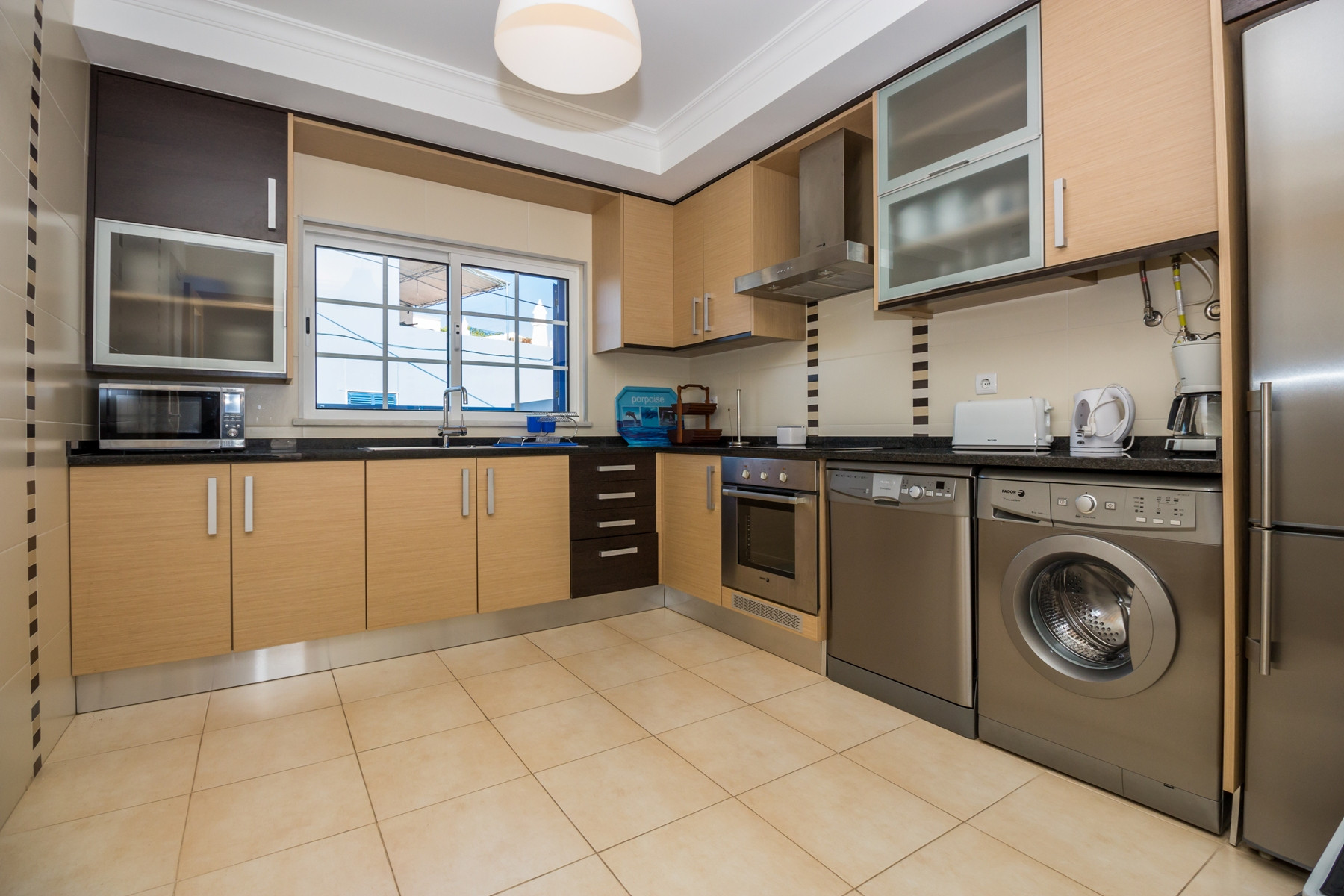 El interior de la vivienda fue cuidadosamente pensado para ofrecer comodidad y funcionalidad. La cocina americana totalmente equipada incluye frigorífico combinado, placa y horno, microondas, tostadora, hervidor eléctrico, máquina de café Nespresso y de filtro, lavavajillas y lavadora, además de todos los utensilios necesarios para preparar comidas. La amplia sala de estar y comedor tiene acceso directo al exterior y a la piscina, siendo ideal para momentos de convivencia. El alojamiento ofrece además aire acondicionado en todos los espacios, calefacción central, tres televisores y Wi-Fi gratuito.