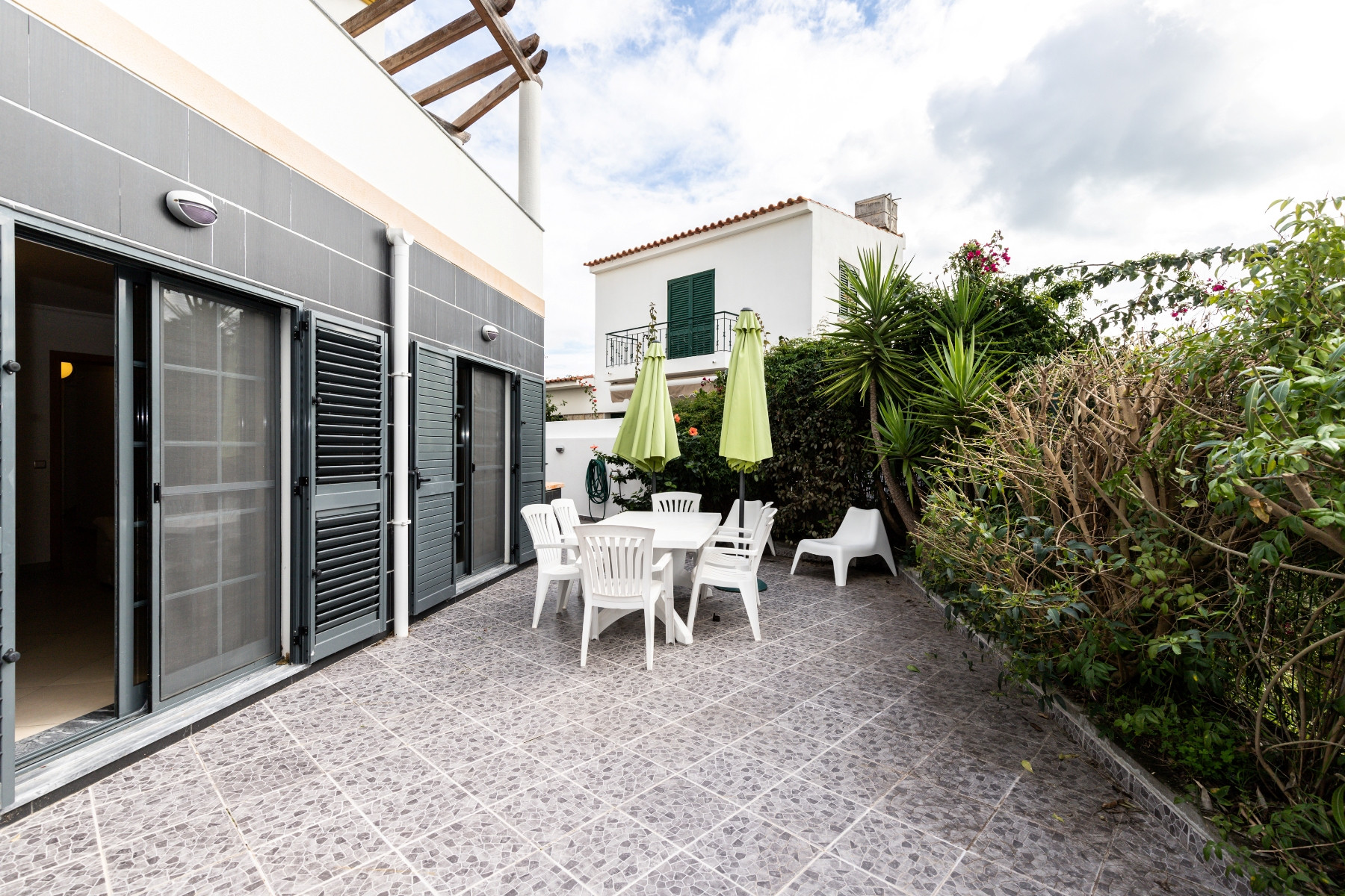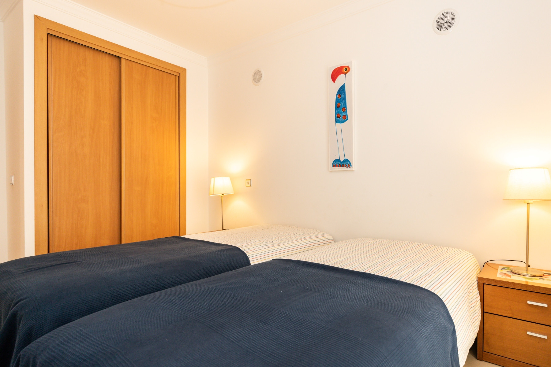 En la primera planta se encuentran los otros 2 dormitorios, cada uno con 2 camas individuales, un baño común con bañera y acceso a dos generosos terrazas, orientadas al este y al oeste. La vivienda está equipada con aire acondicionado y Wi-Fi, garantizando comodidad en todas las estaciones.