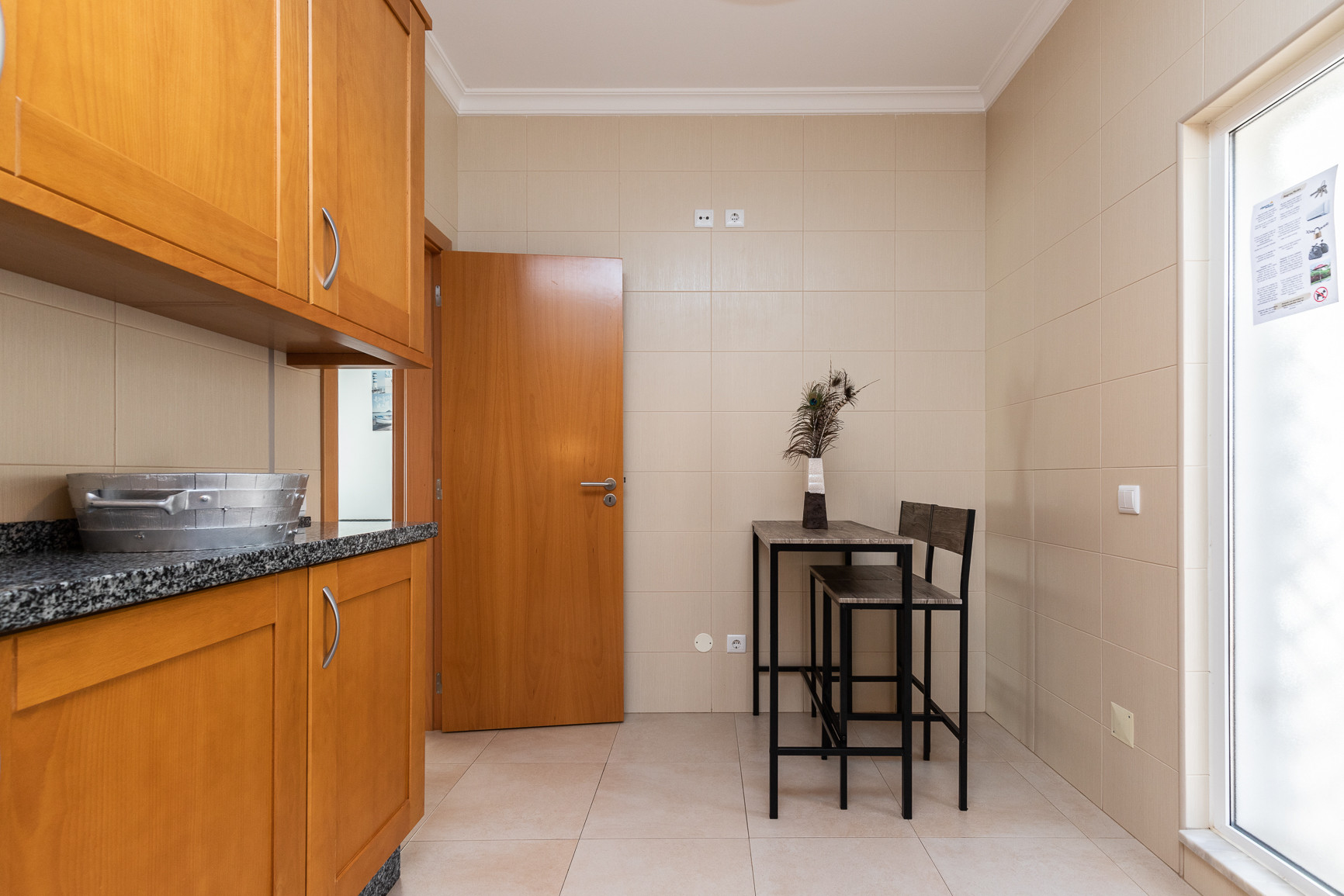 La cocina independiente, moderna y funcional, está completamente equipada con frigorífico, lavadora, lavavajillas, horno, microondas, cafetera (DOLCE GUSTO), tostadora y una amplia selección de utensilios y vajilla, perfecta para preparar comidas en familia. La acogedora sala de estar invita al descanso, equipada con TV y Wi-Fi, para que se mantenga siempre conectado.