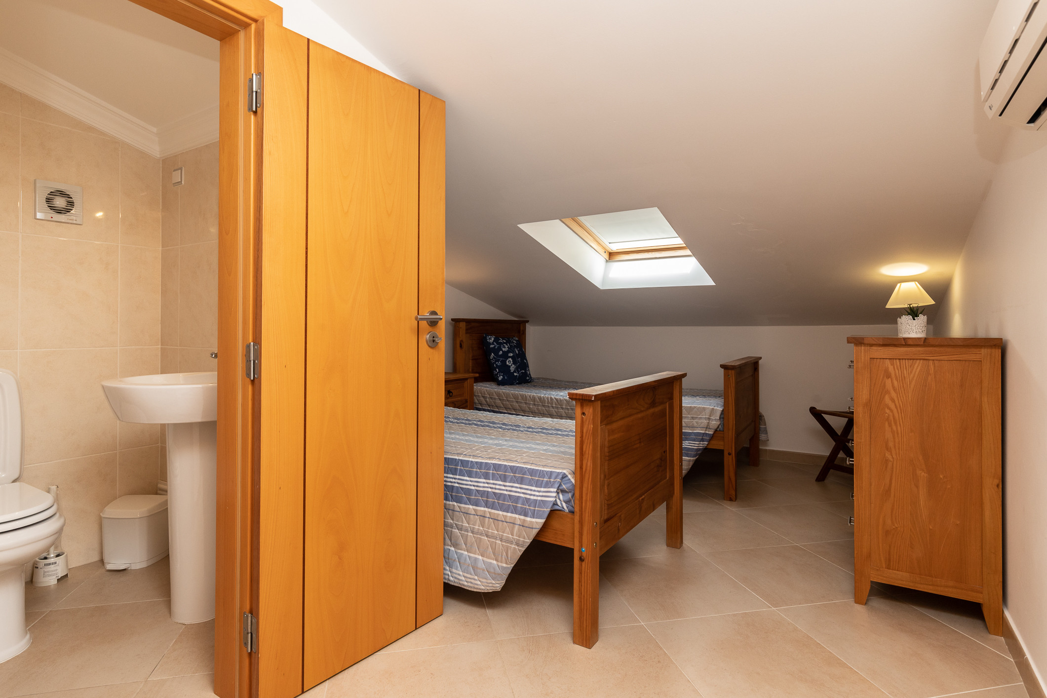 Distribuida por tres pisos e sótão, a casa dispõe de quatro quartos cuidadosamente decorados: dois com camas de casal (um deles em suíte com poliban de hidromassagem) e dois com camas individuais, garantindo flexibilidade para diferentes configurações de grupo. Ao todo, conta com três casas de banho completas uma com chuveiro, outra com banheira e uma de serviço assegurando conforto e privacidade para todos os hóspedes.