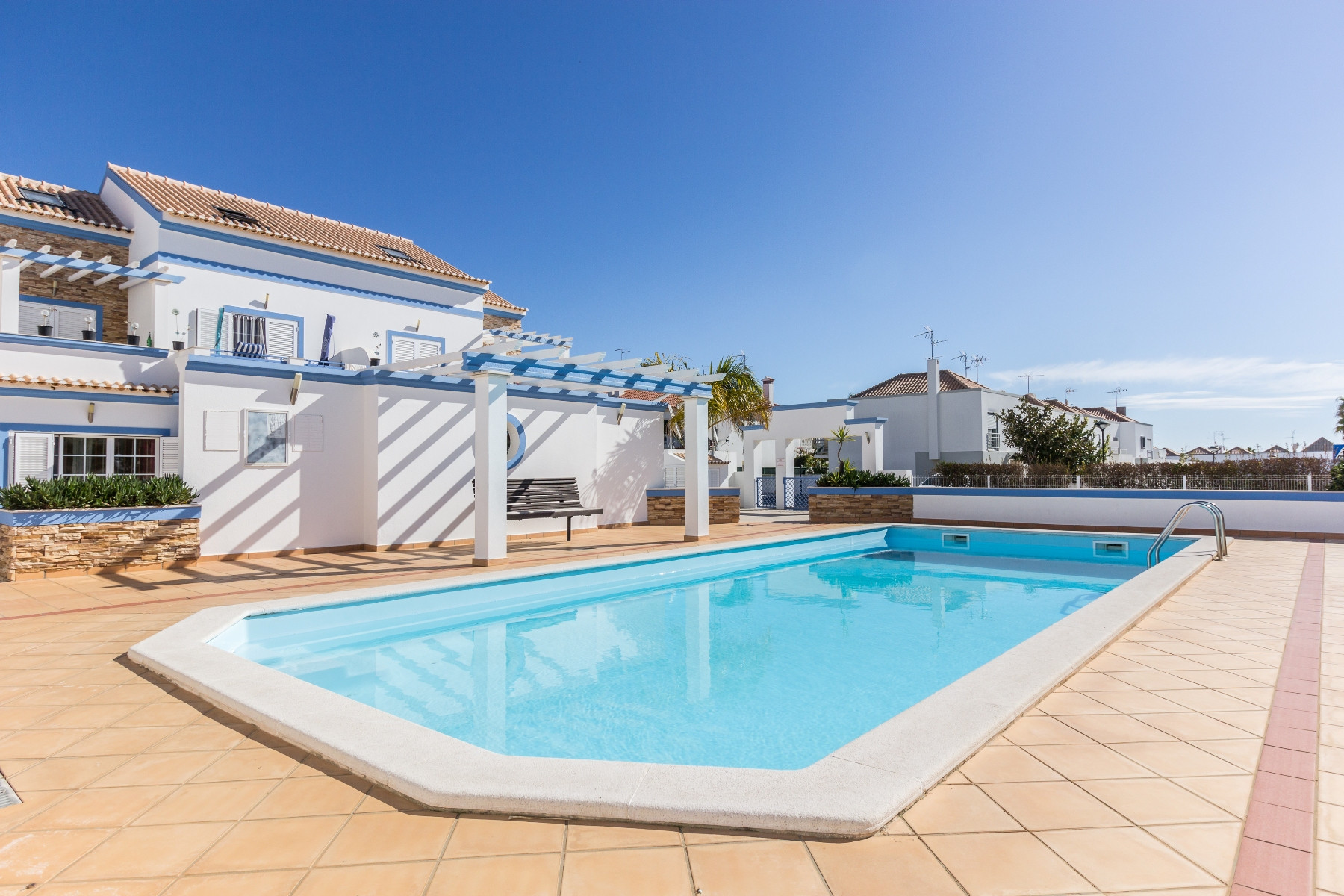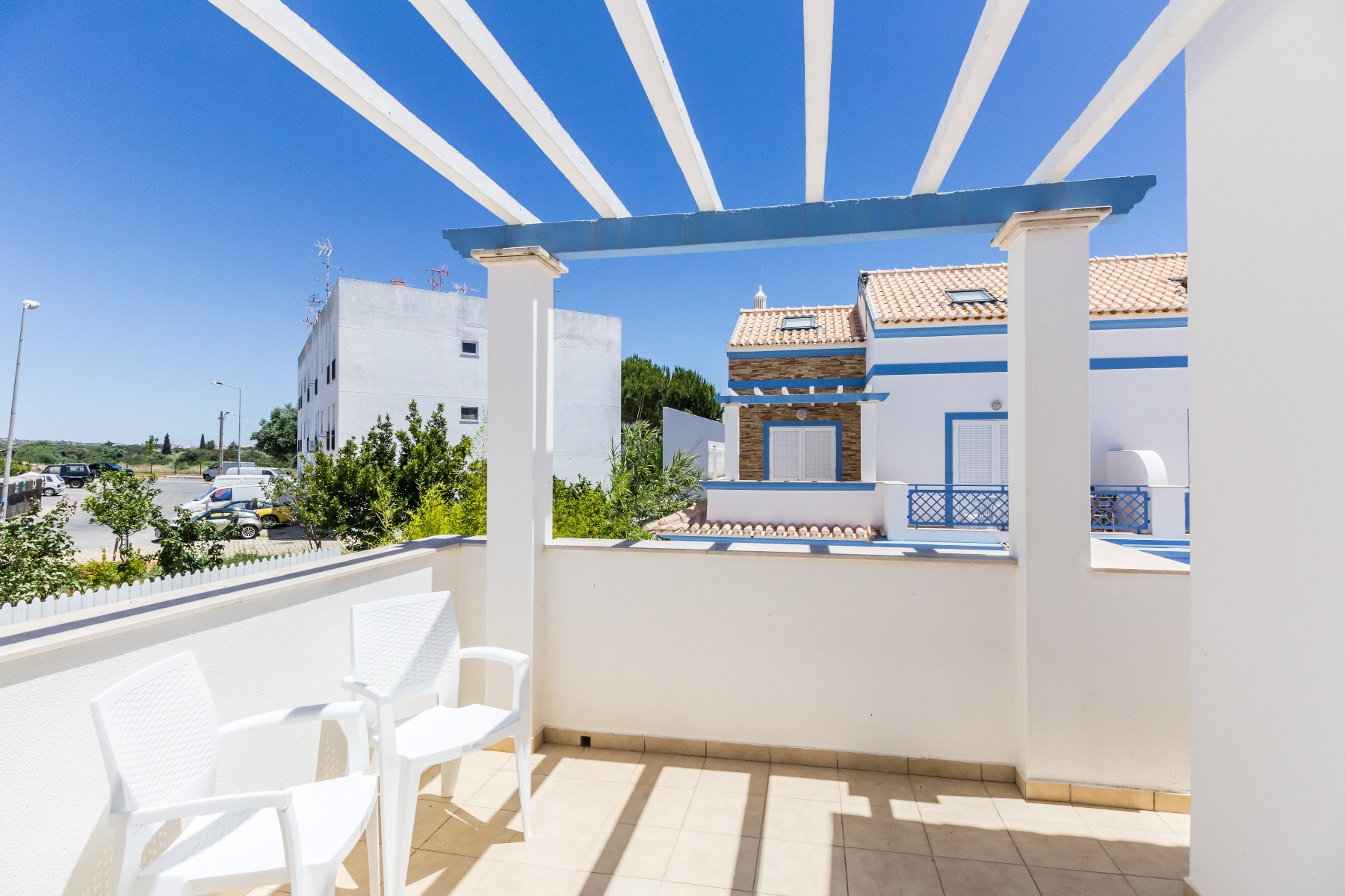 Los espacios exteriores son un verdadero destaque, con un patio equipado con barbacoa, fregadero y ducha, además de balcones y mobiliario de jardín, ideales para momentos de convivencia al aire libre. La propiedad dispone además de aire acondicionado, Wi-Fi, estacionamiento privado y acceso a la piscina compartida del condominio.
