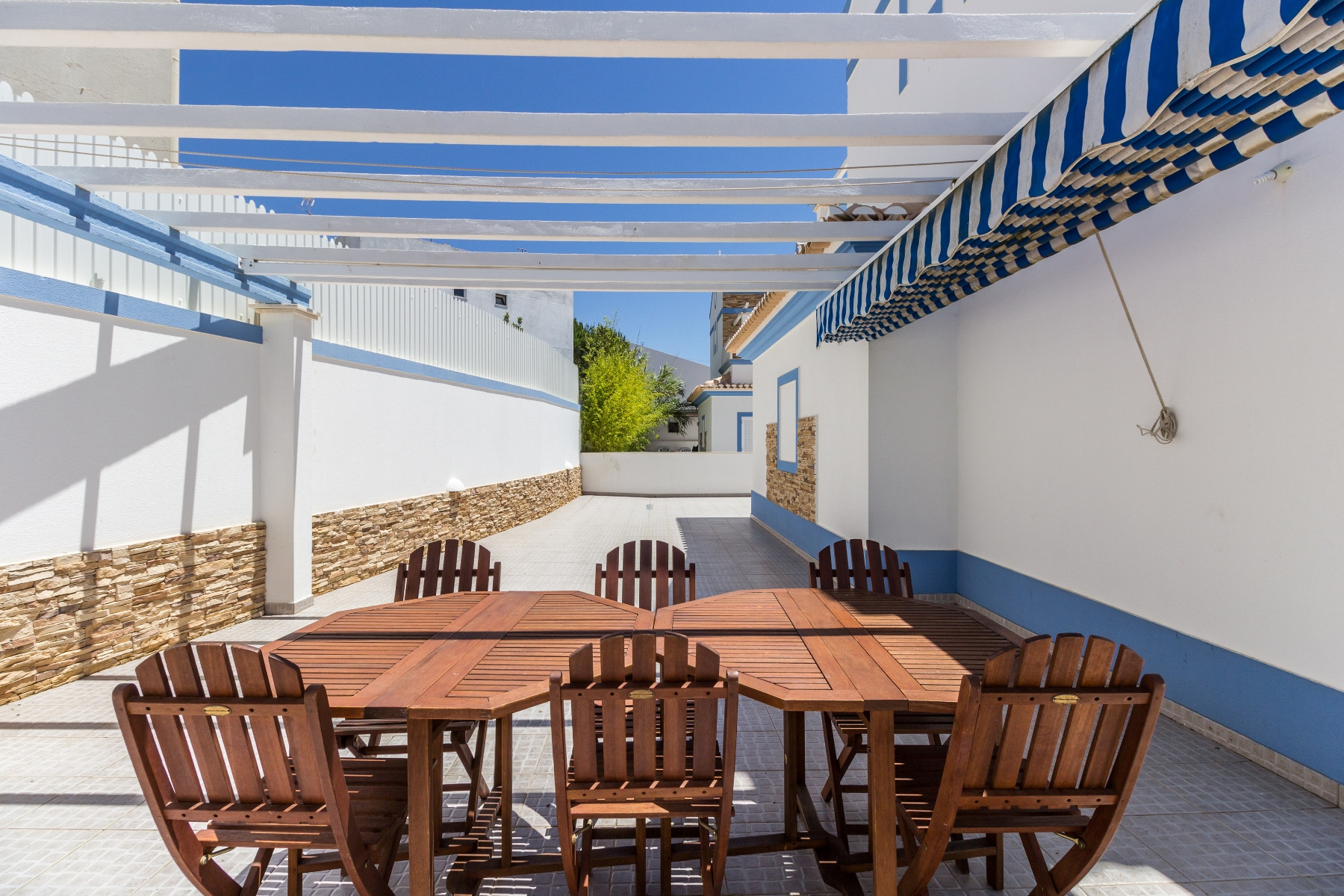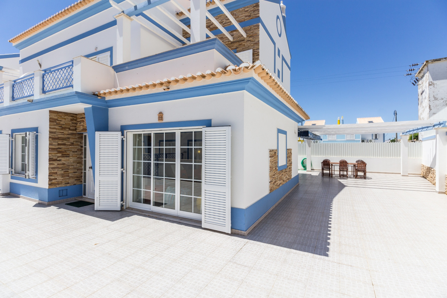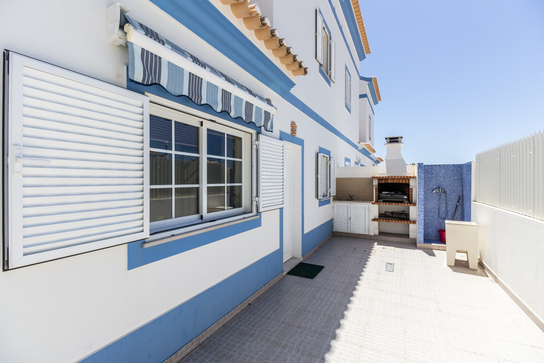 En el exterior, los huéspedes pueden disfrutar de un agradable patio con barbacoa (BBQ), ducha, fregadero, mesa, sillas y sombrilla, además de un jardín con mobiliario de exterior y terrazas ideales para momentos de relajación. La vivienda dispone además de aire acondicionado, WiFi (MEO) y estacionamiento privado para dos coches.