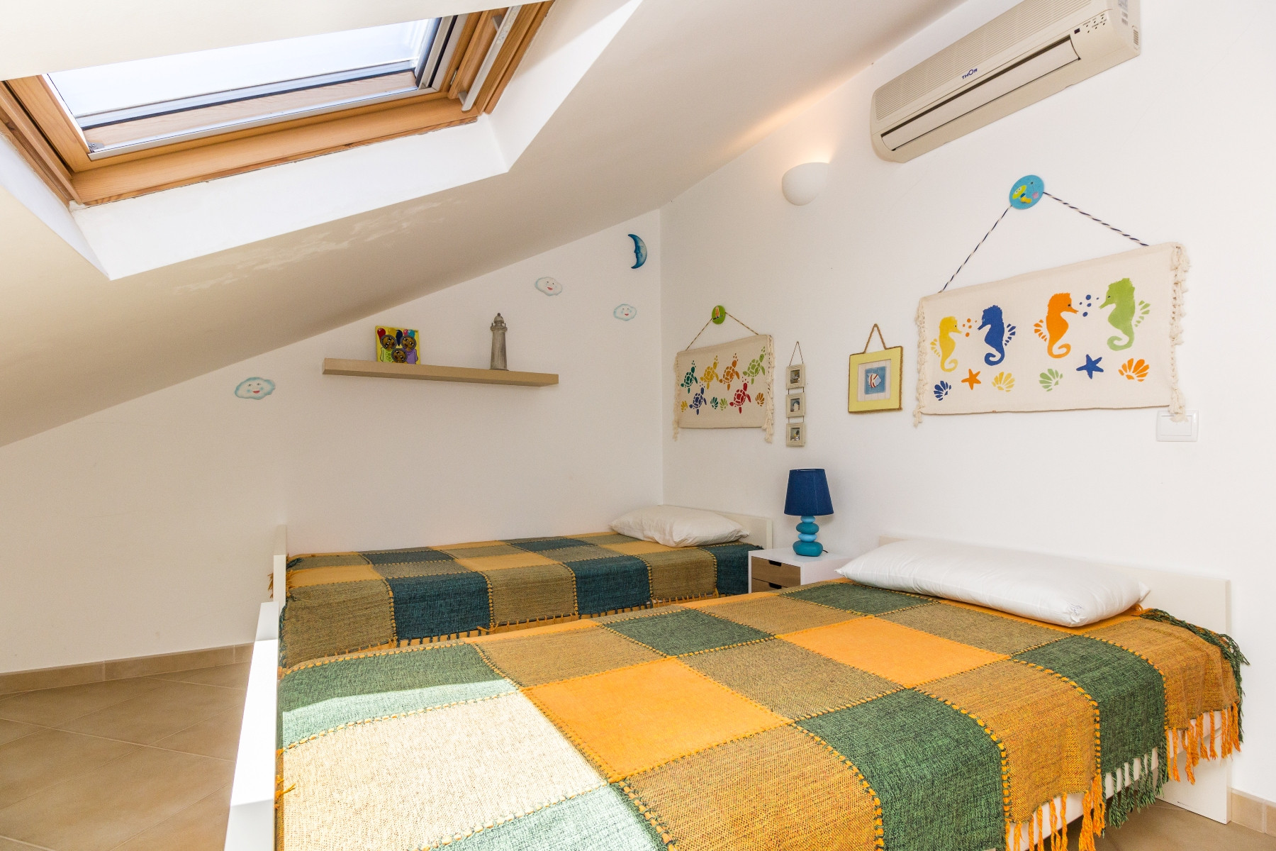 En la primera planta se encuentran las dos habitaciones de matrimonio y un cuarto de baño común con bañera. En la última planta, hay dos habitaciones con camas individuales, un cuarto de baño de servicio y acceso a una agradable terraza.