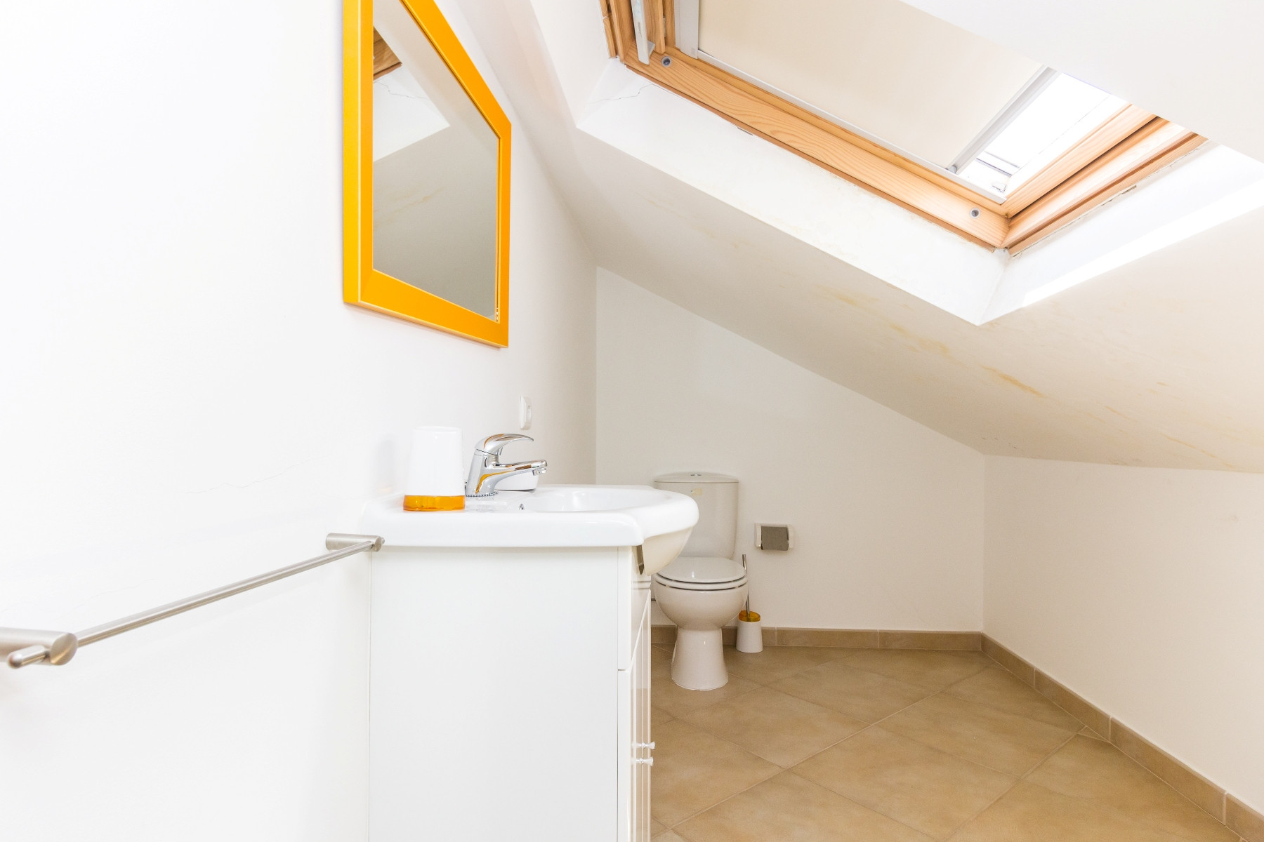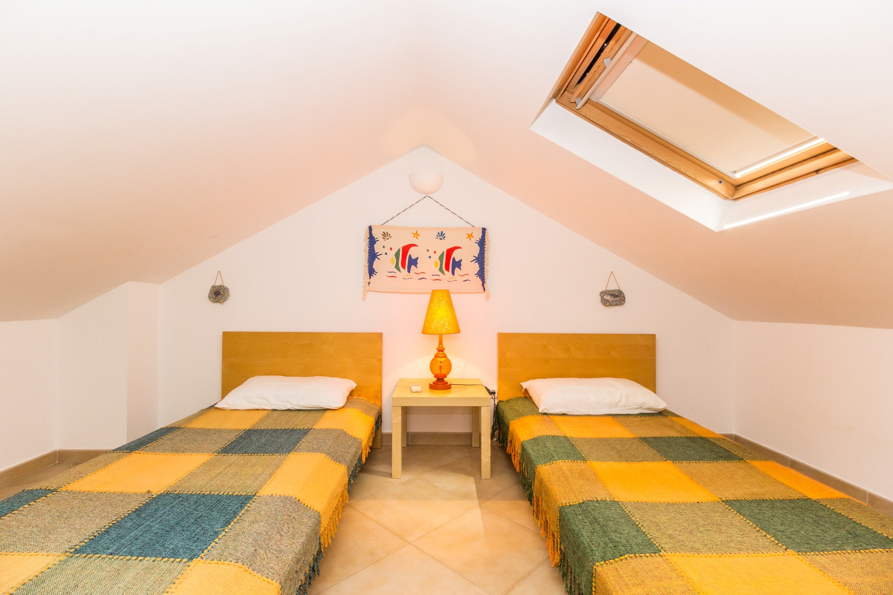 La primera planta dispone de dos habitaciones dobles con armarios empotrados y acceso a un generoso balcón orientado al este, así como de un amplio cuarto de baño con bañera, de uso común para las habitaciones. En el ático, las dos habitaciones con camas individuales comparten un cuarto de baño de servicio.