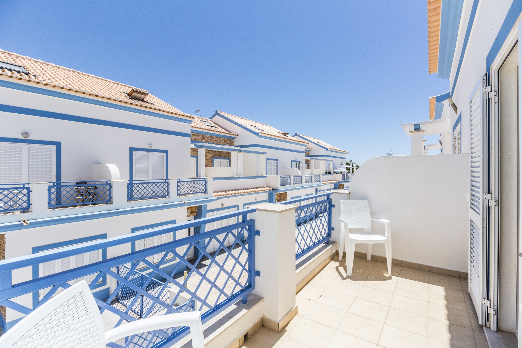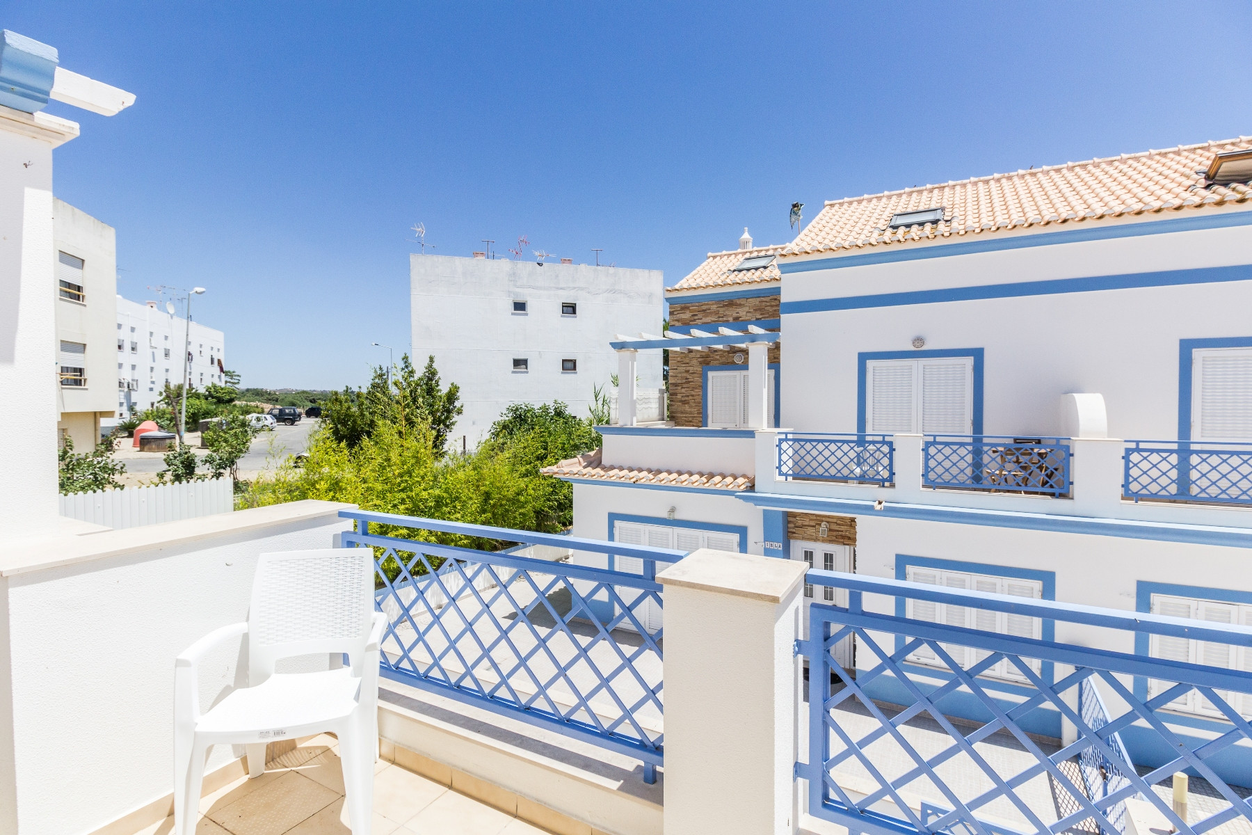 La vivienda está equipada con aire acondicionado en toda su extensión, acceso a internet Wi-Fi y TV MEO, garantizando comodidad y entretenimiento en cualquier época del año. El exterior cuenta con balcón con mobiliario de jardín y barbacoa, perfecto para momentos de convivencia.