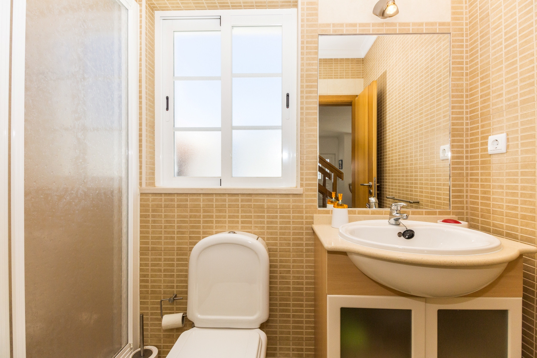 La vivienda aloja cómodamente hasta 8 personas, distribuidas en cuatro habitaciones: dos habitaciones con cama de matrimonio en la primera planta y dos habitaciones con dos camas individuales en el ático. Tres cuartos de baño completan el espacio: uno con ducha, uno con bañera y uno de servicio.
