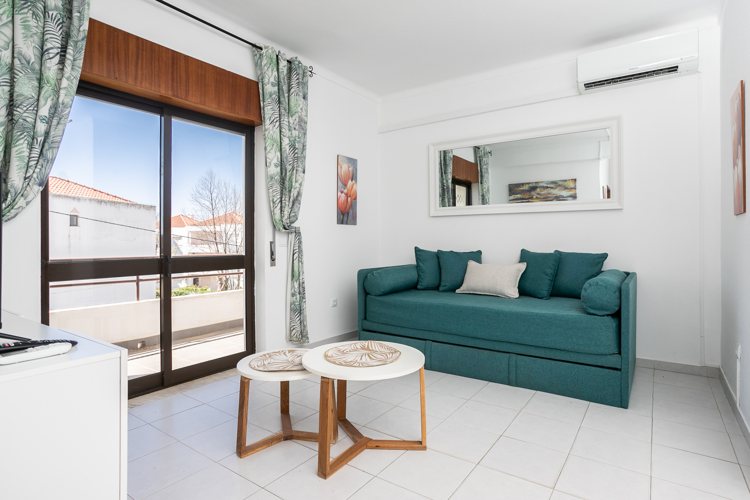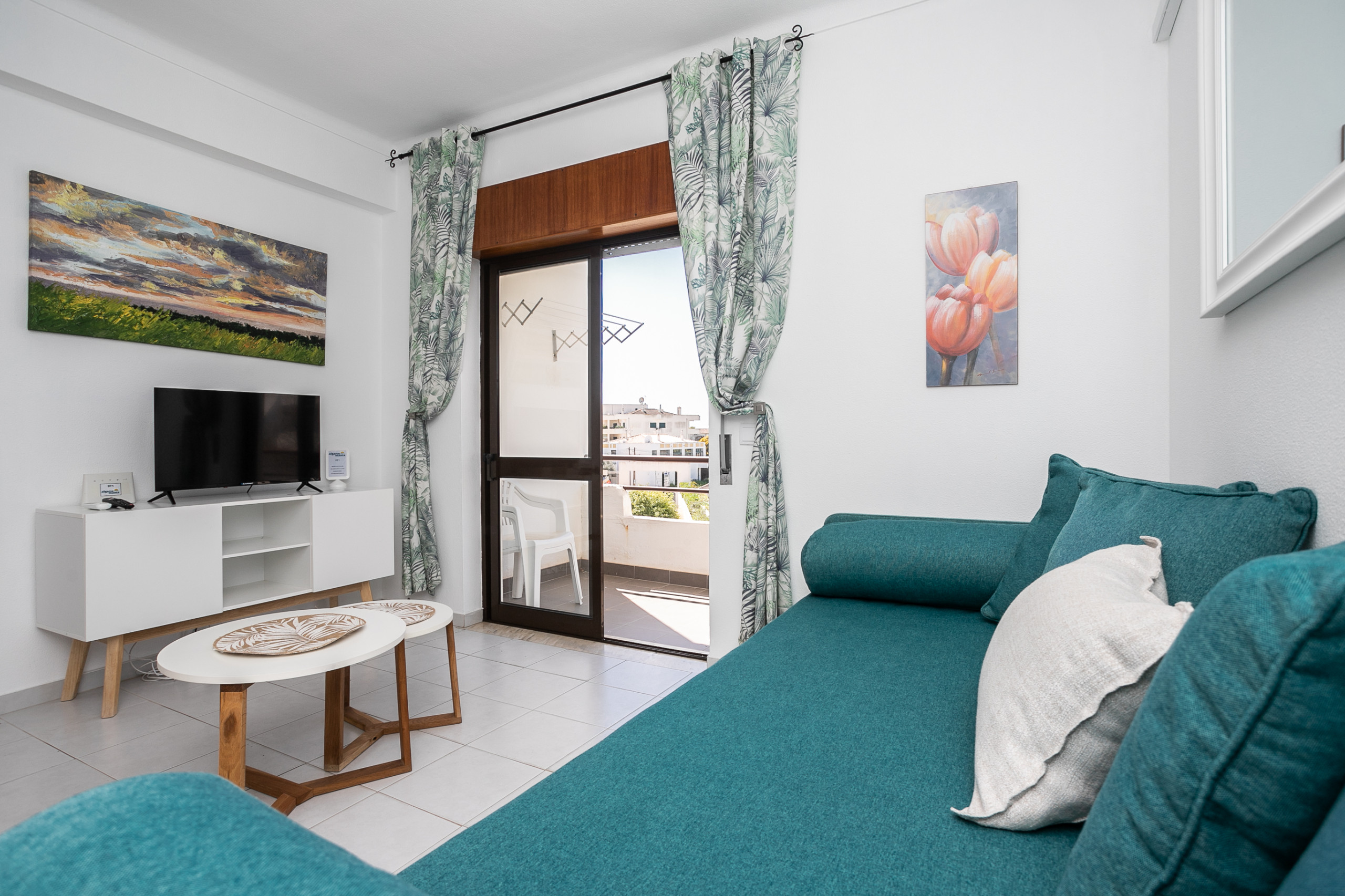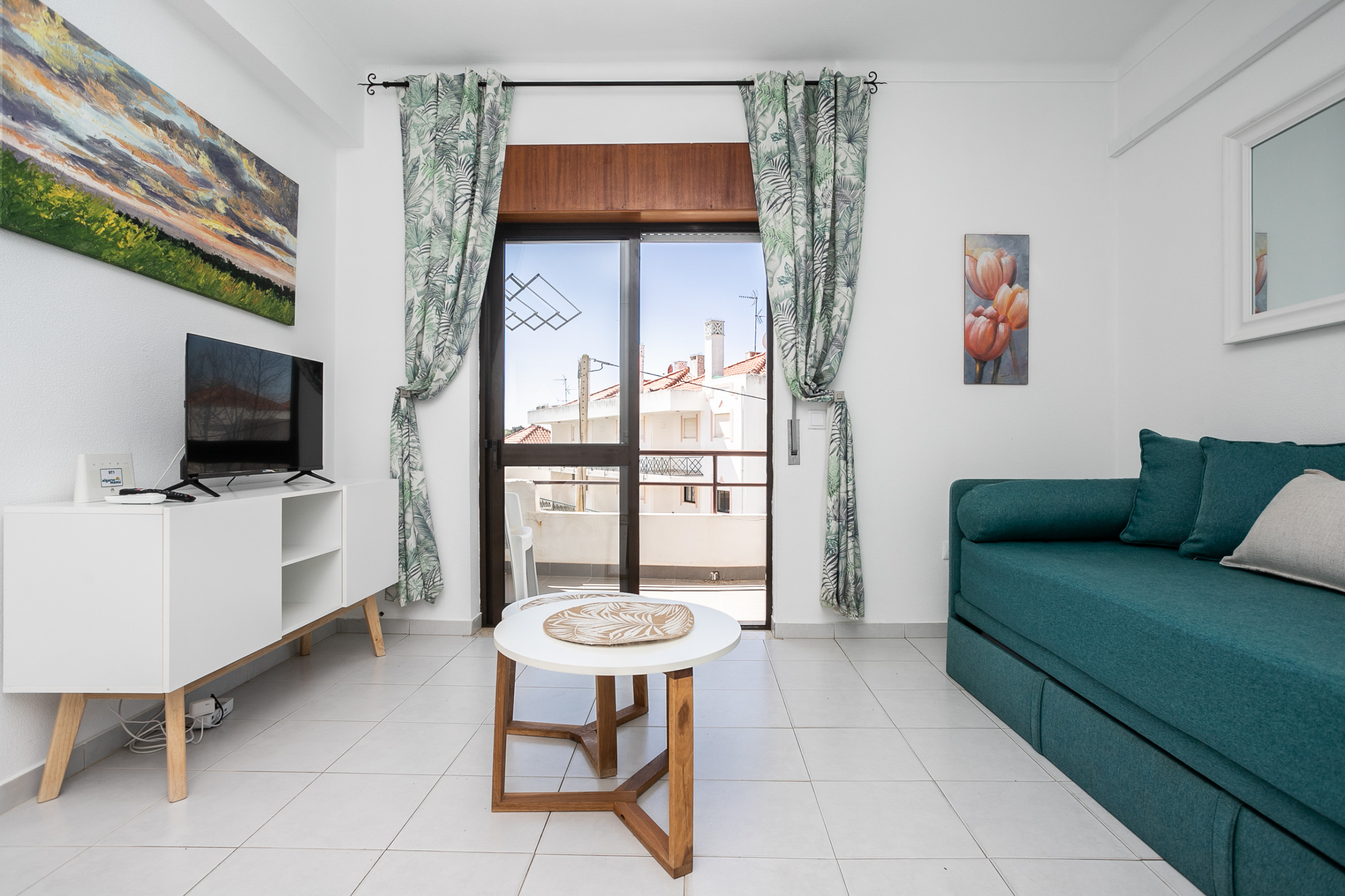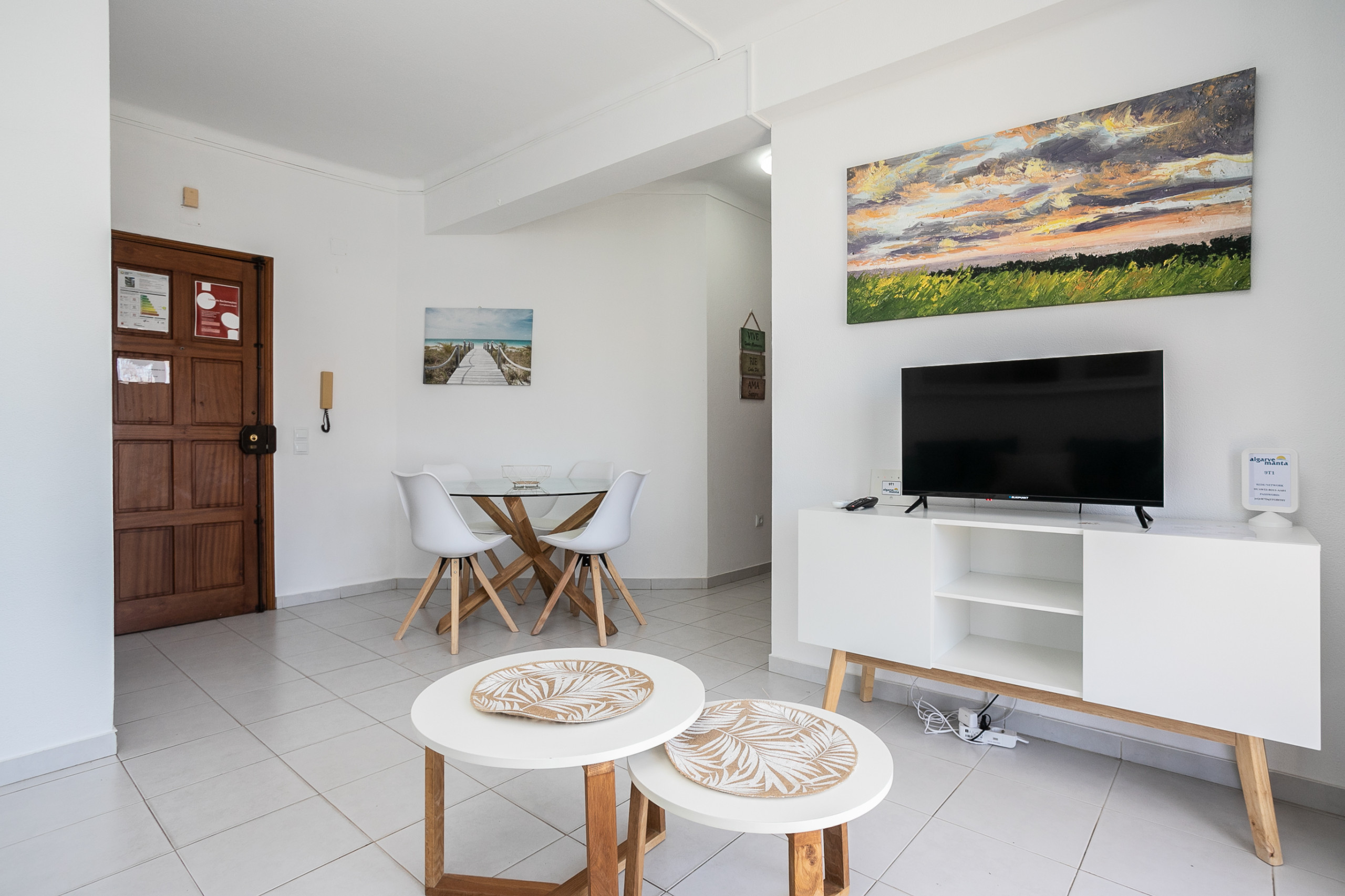 L'espace social dispose de la climatisation dans le salon, parfait pour les journées les plus chaudes de l'Algarve. L'appartement dispose également d'un Wi-Fi et d'une télévision, garantissant que vous restez toujours connecté et divertis.