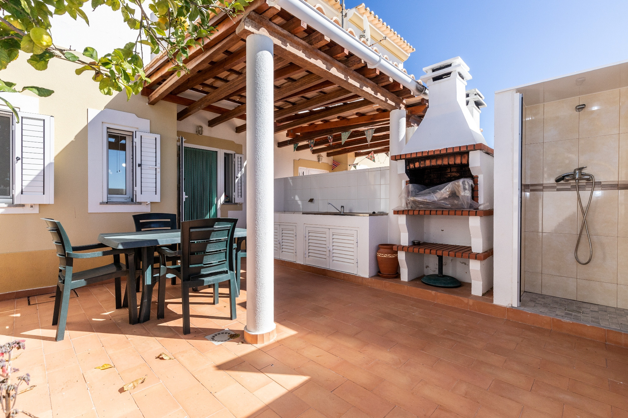 Composé de deux étages: Le rez de chaussée se compose d'un salon avec TV, chaîne stéréo et salle à manger pour six personnes, salle de bains commune avec jacuzzi douche, cuisine avec micro-ondes, réfrigérateur, four, machine à laver et Lave-vaisselle. Terrasse avec barbecue, laver la vaisselle, douche, table, chaises et parasol.