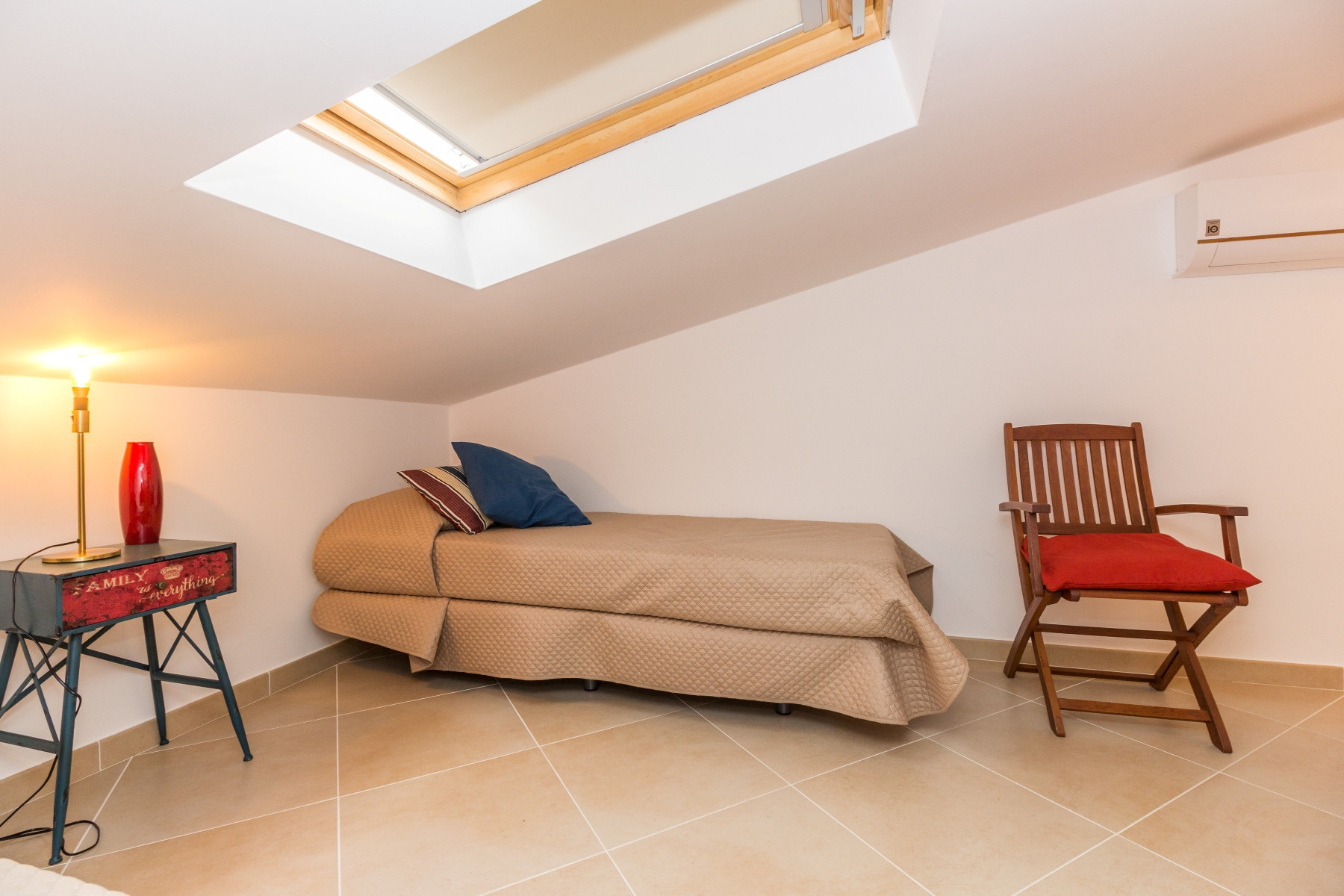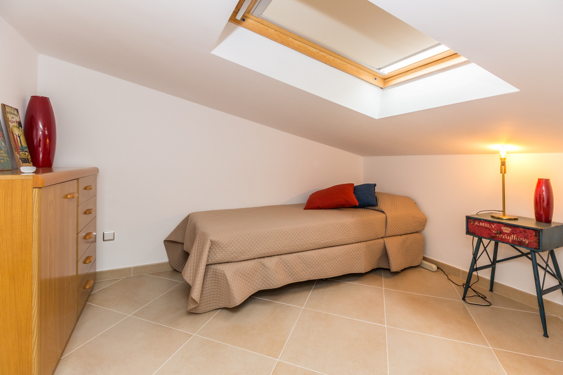 À l'étage supérieur il ya deux chambres avec deux lits simples chacune, salle de bains de service et terrasse.